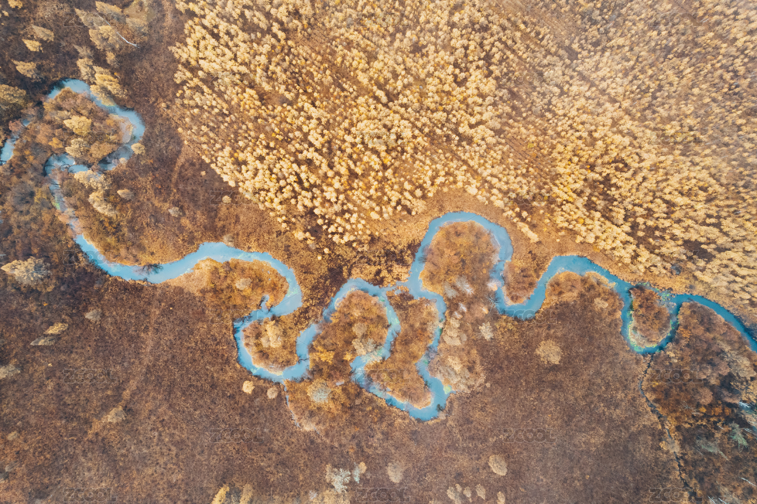 航拍秋季中国内蒙乌兰布统草原上滦河河曲