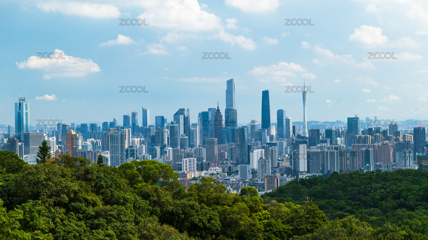 中国广东省深圳市莲花山俯瞰城市建筑群景色