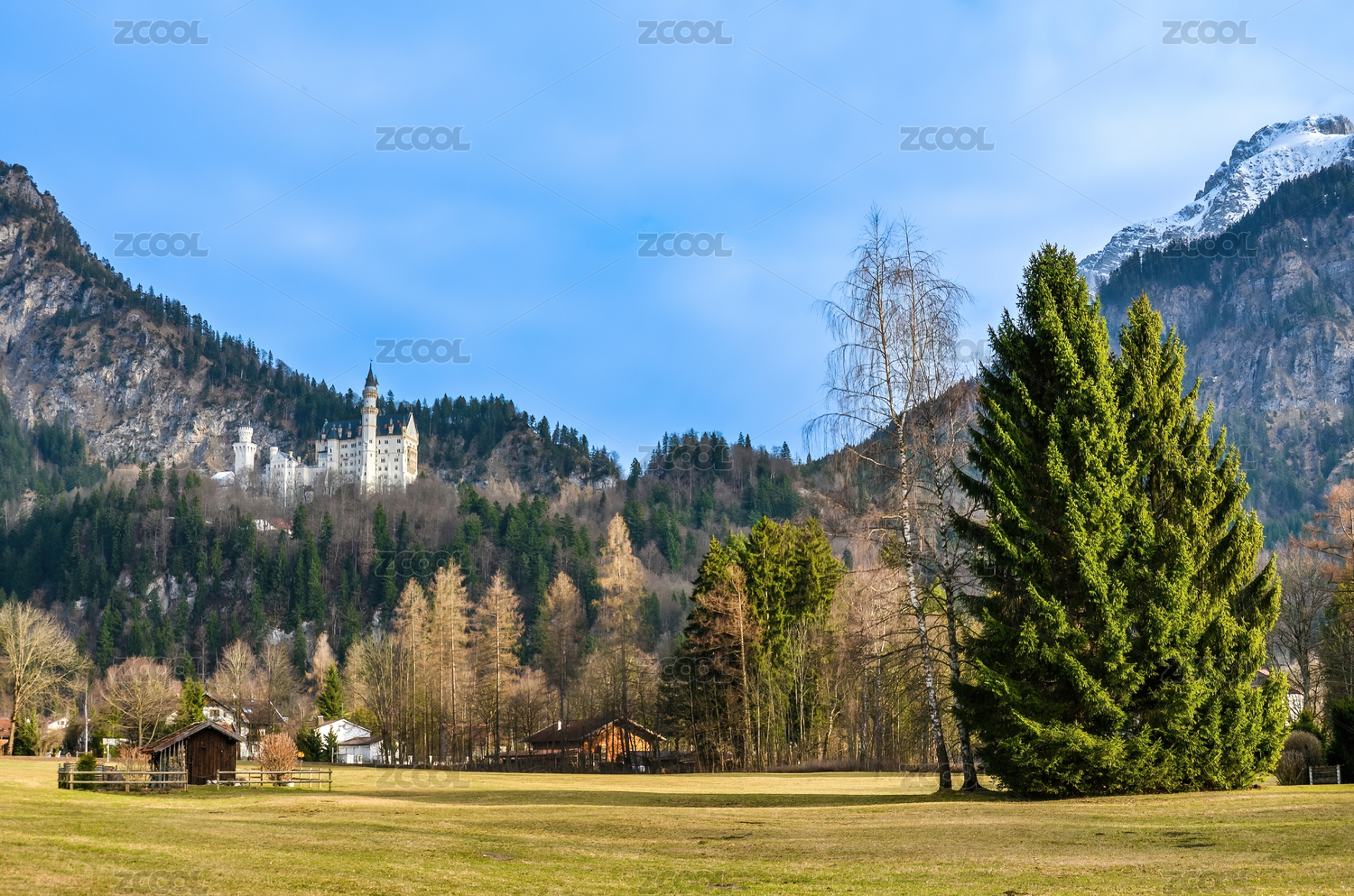 欧洲德国巴伐利亚州阿尔卑斯山脚下的新天鹅堡