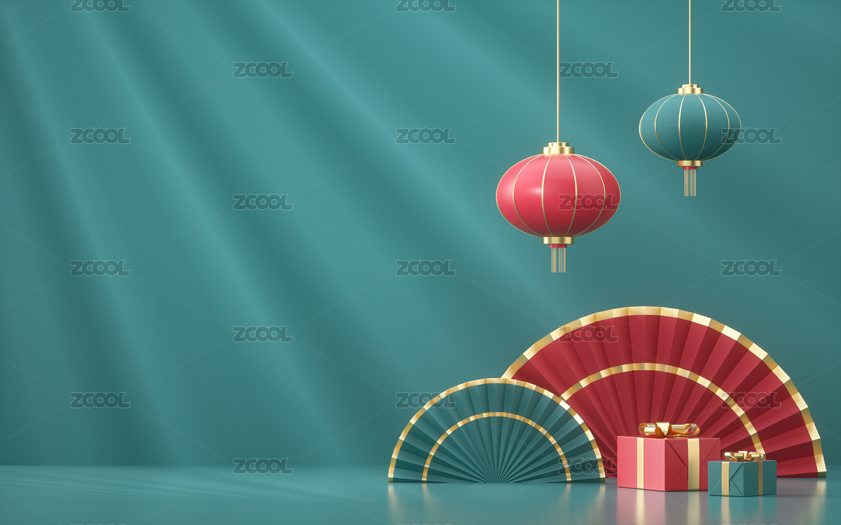 3d产品展台春节场景新年背景