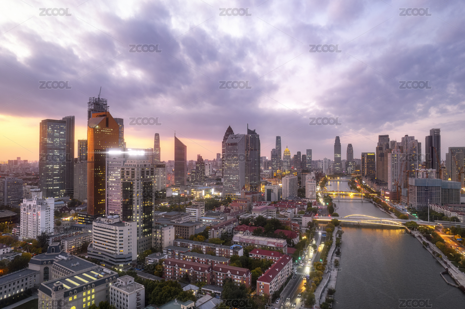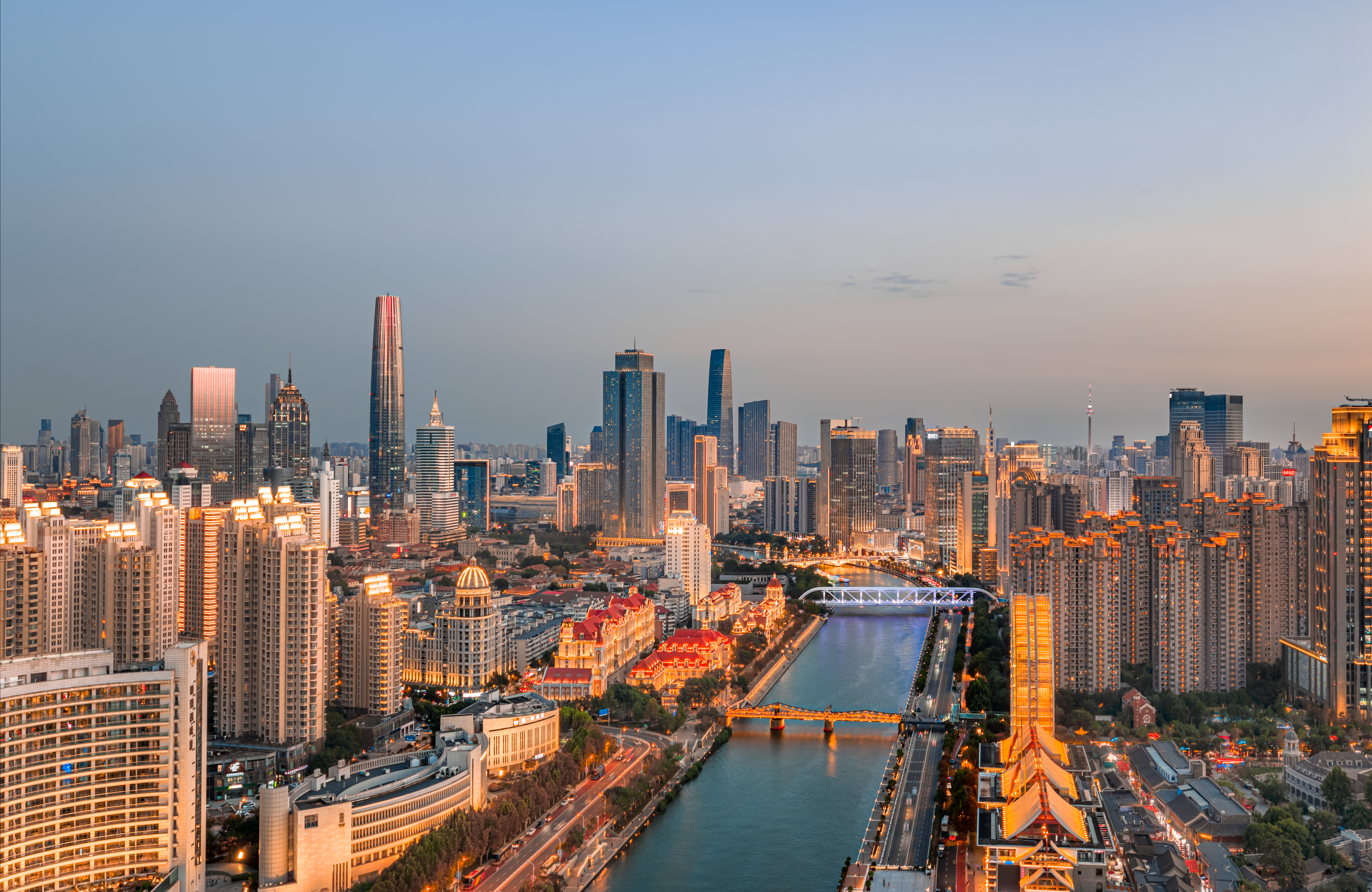 天津,海河,风景,天际线,城市天际线,天空,晚霞,日落,商圈,建筑群