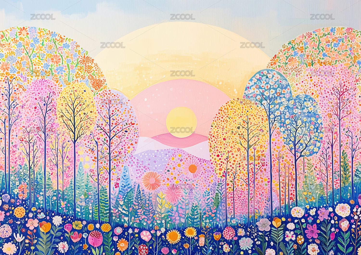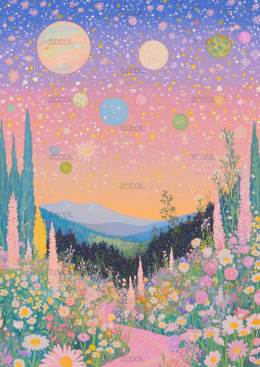 AIGCFG03,插画,卡通,背景,壁纸,唯美,油画,肌理,丙烯,装饰画