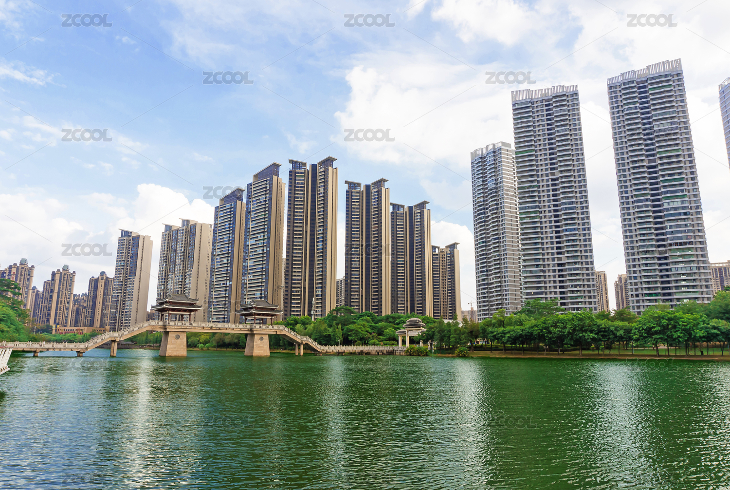 中国广州南沙自贸区蕉门河岸楼盘建筑