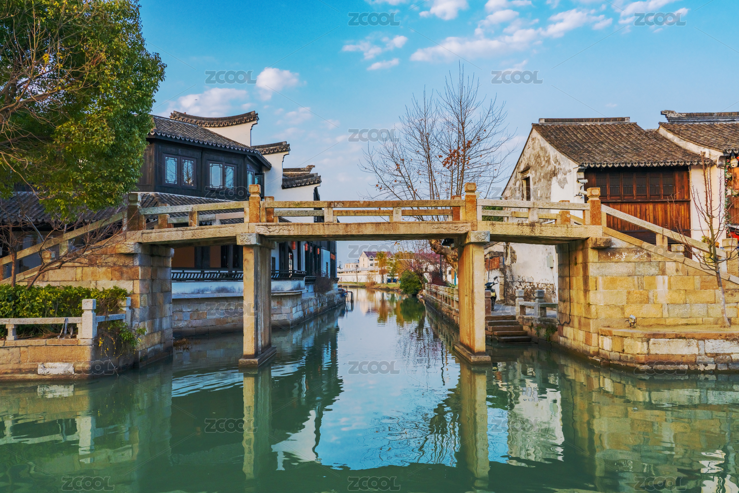 中国浙江省乌镇的古建筑和古桥梁和河流