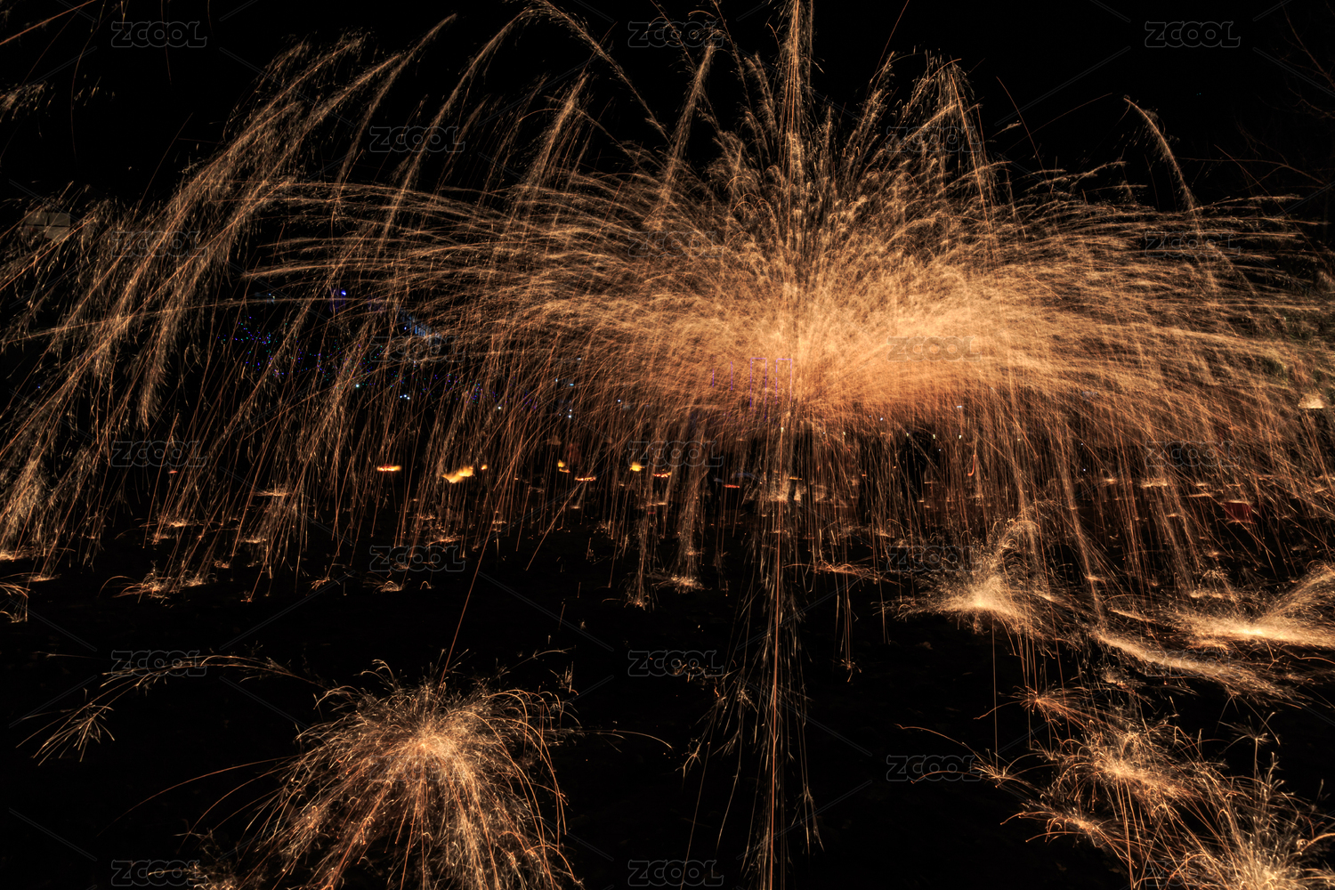 杭州良渚址亨乐园的文化非遗打铁花表演