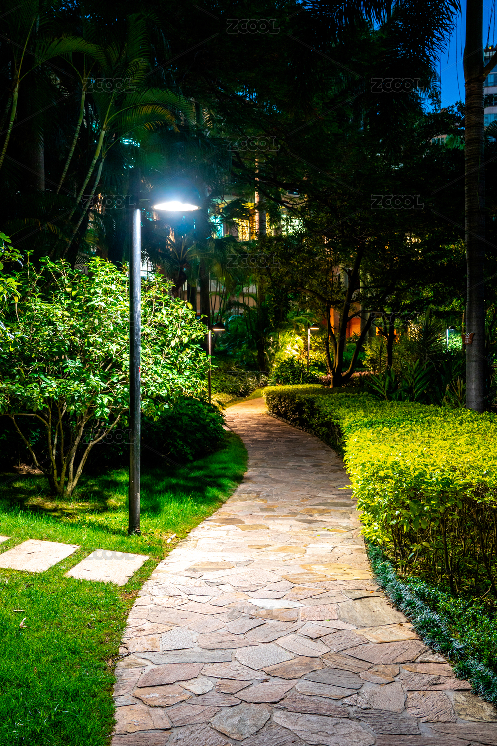 椰树,椰子树,植被,热带,绿化,物业,路灯,灯,小区,社区
