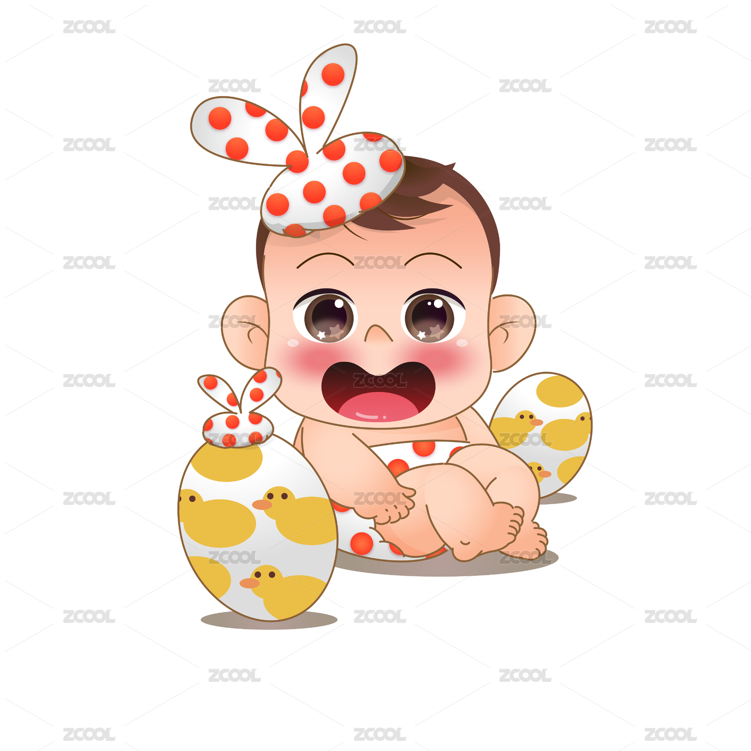 可爱微笑儿童节全身宝宝婴儿插画元素