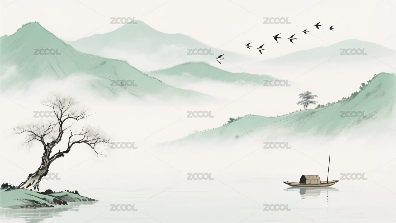 船只,船,水墨画,渔夫,小船,渔船,中式,船舶,小舟,中国风