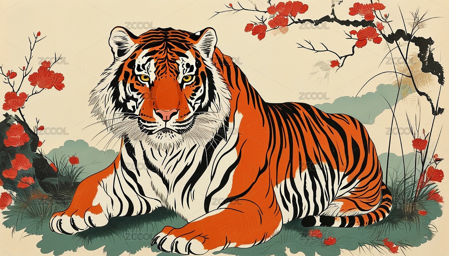 浮世绘风格动物老虎