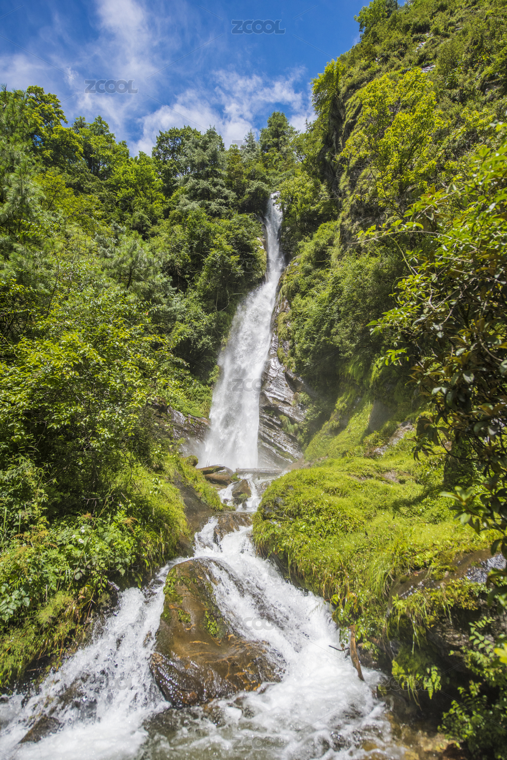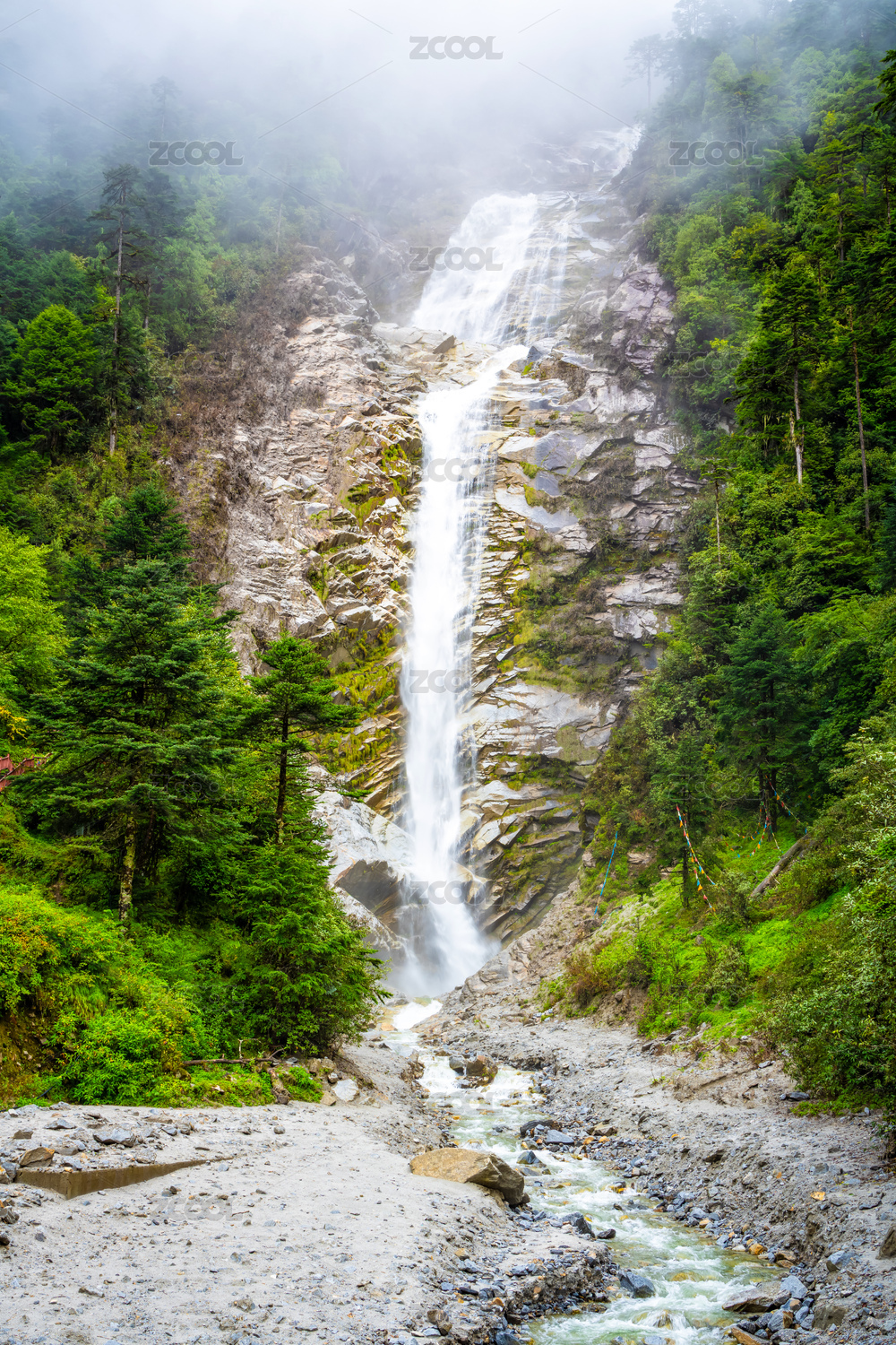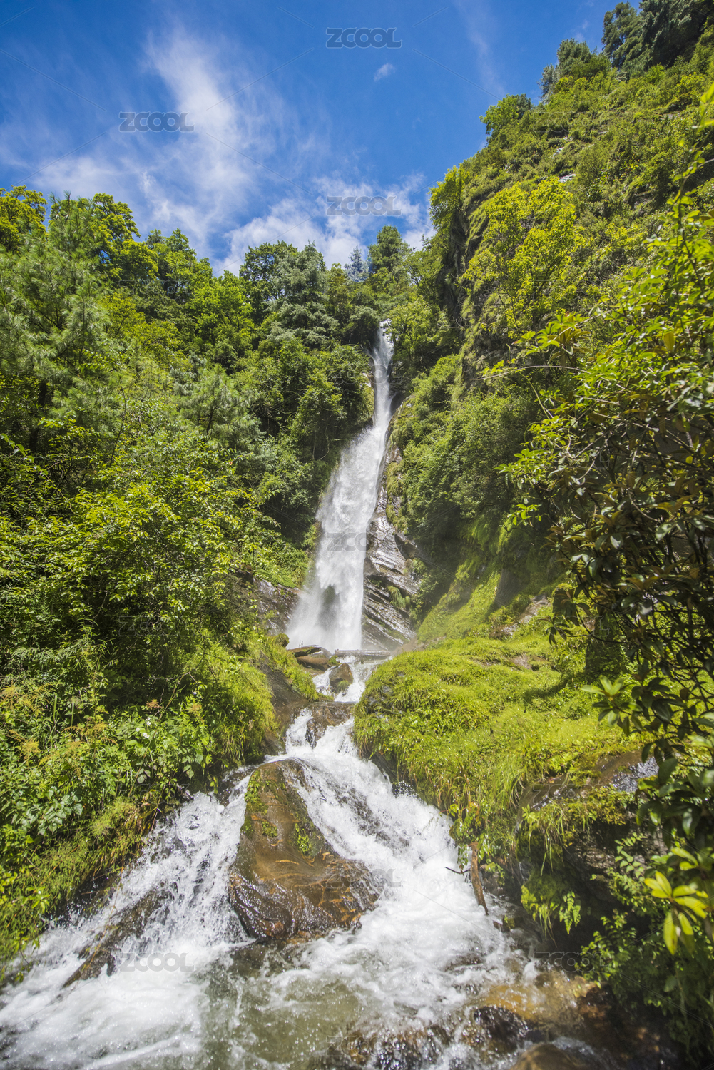 中国西藏聂拉木县樟木口岸附近悬崖瀑布