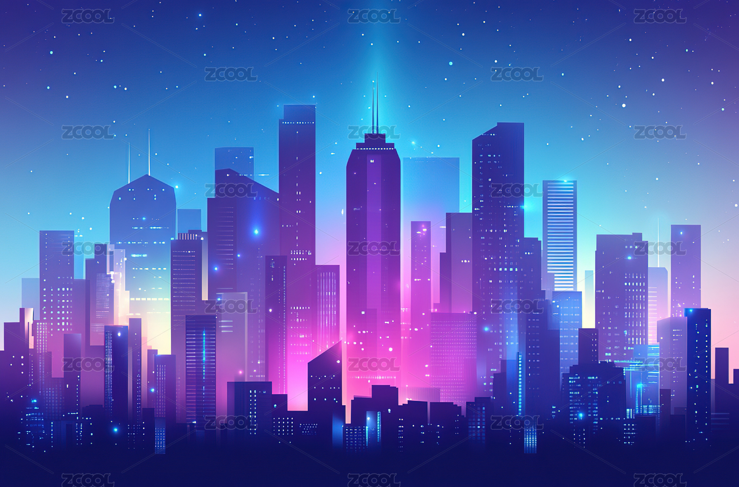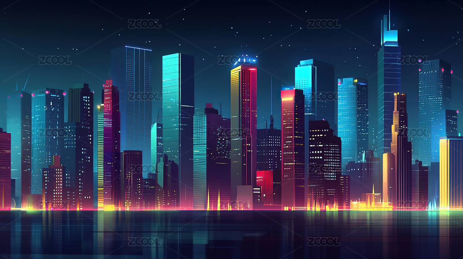 霓虹色彩城市天际线系列插画