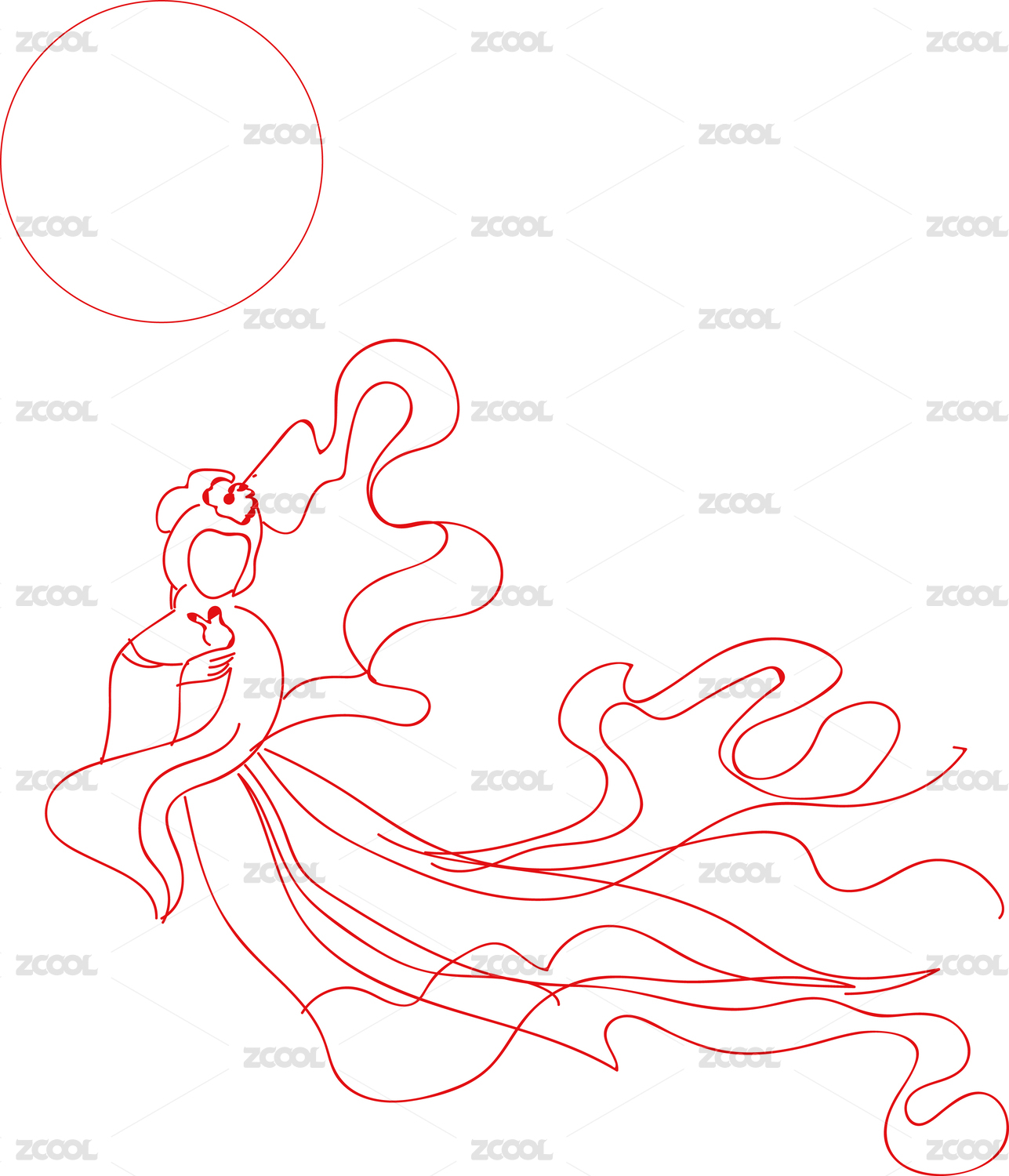 嫦娥奔月传统云纹——矢量白描线稿