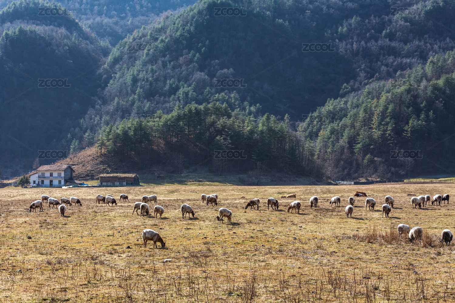 户外,白昼,无人,山谷,山羊,原生态,养殖,羊,水平画幅,放牧