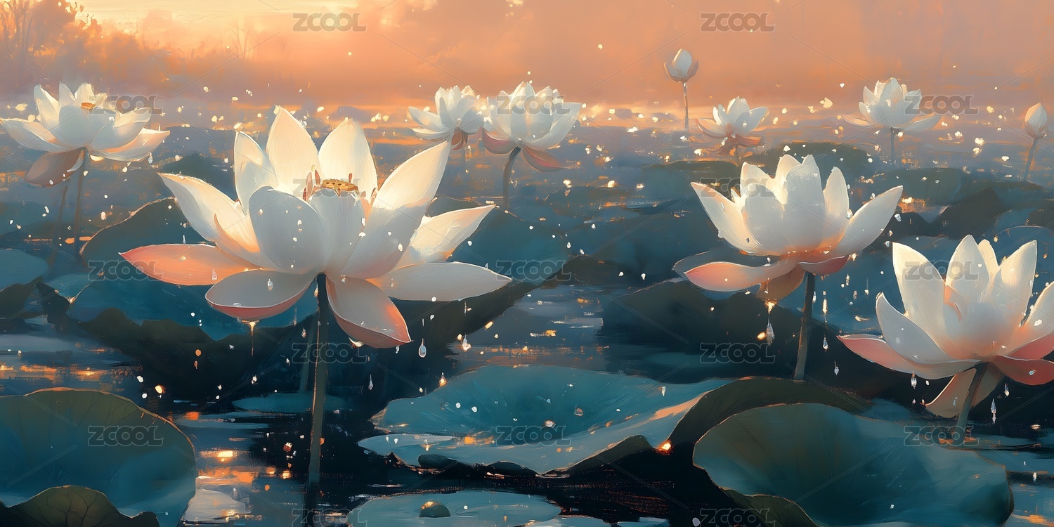 阳光照耀下的荷花插画背景
