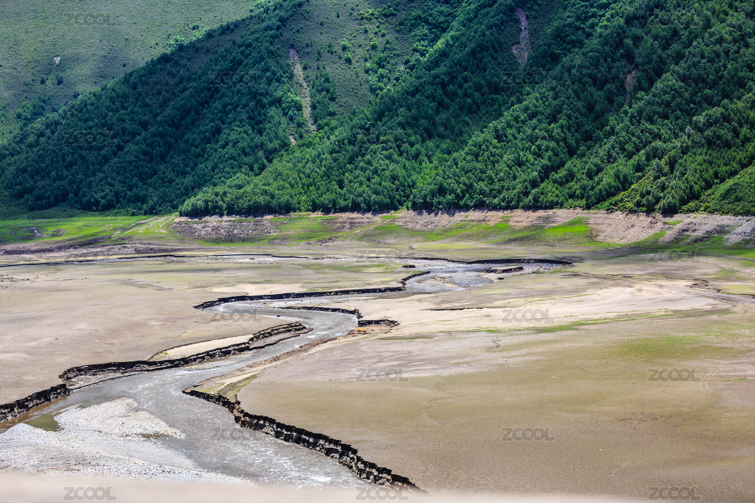 航拍中国理塘格聂镇夏季河谷草地自然风光