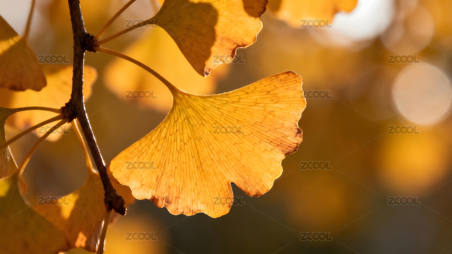 金黄银杏叶特写光影