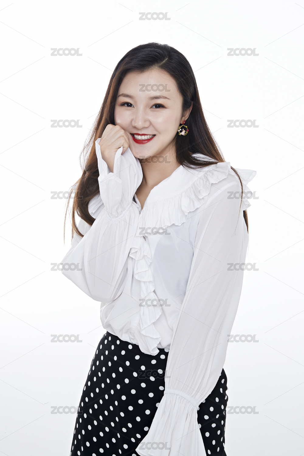 影棚拍摄白色背景亚洲年轻女性商务人像
