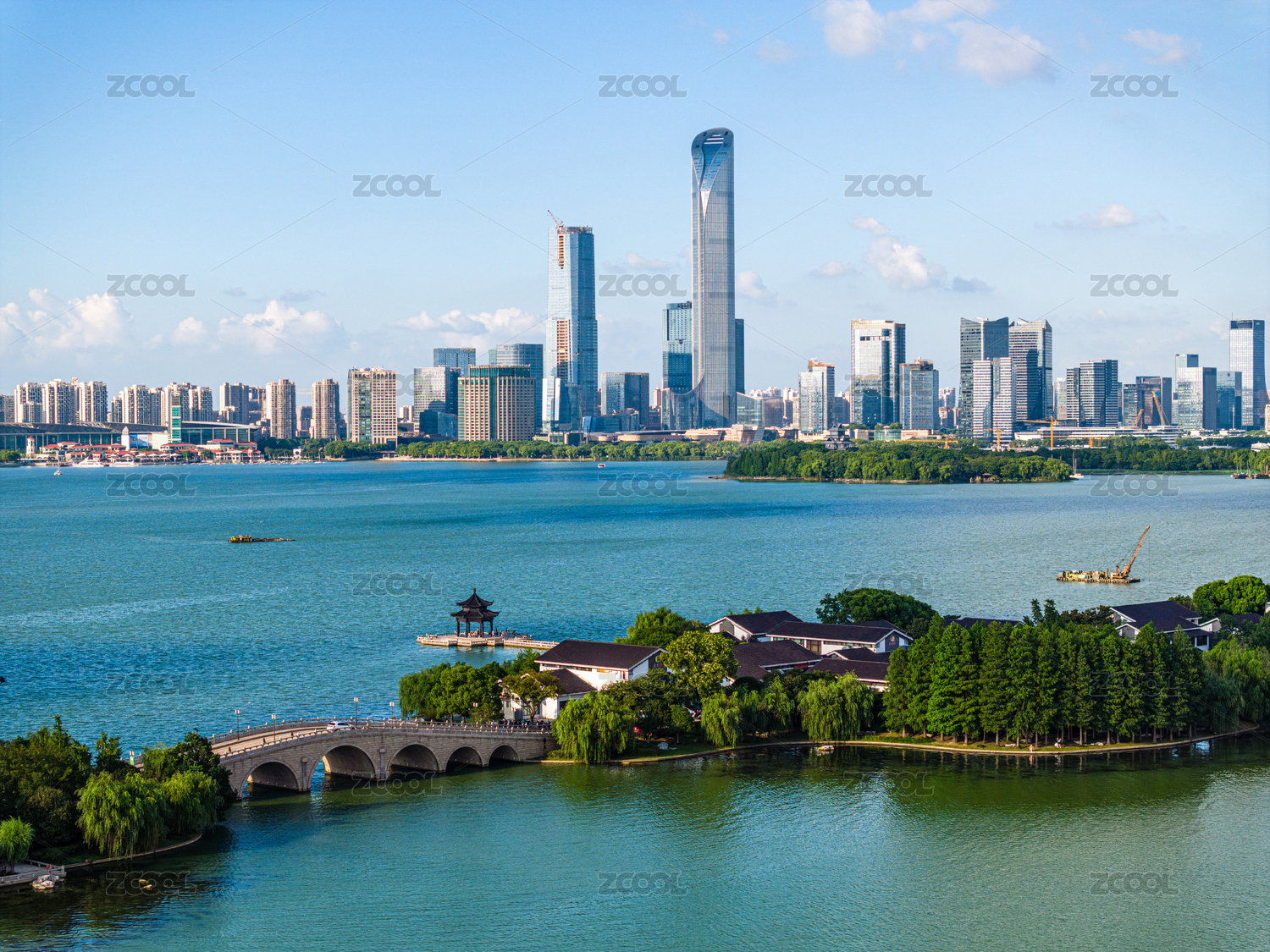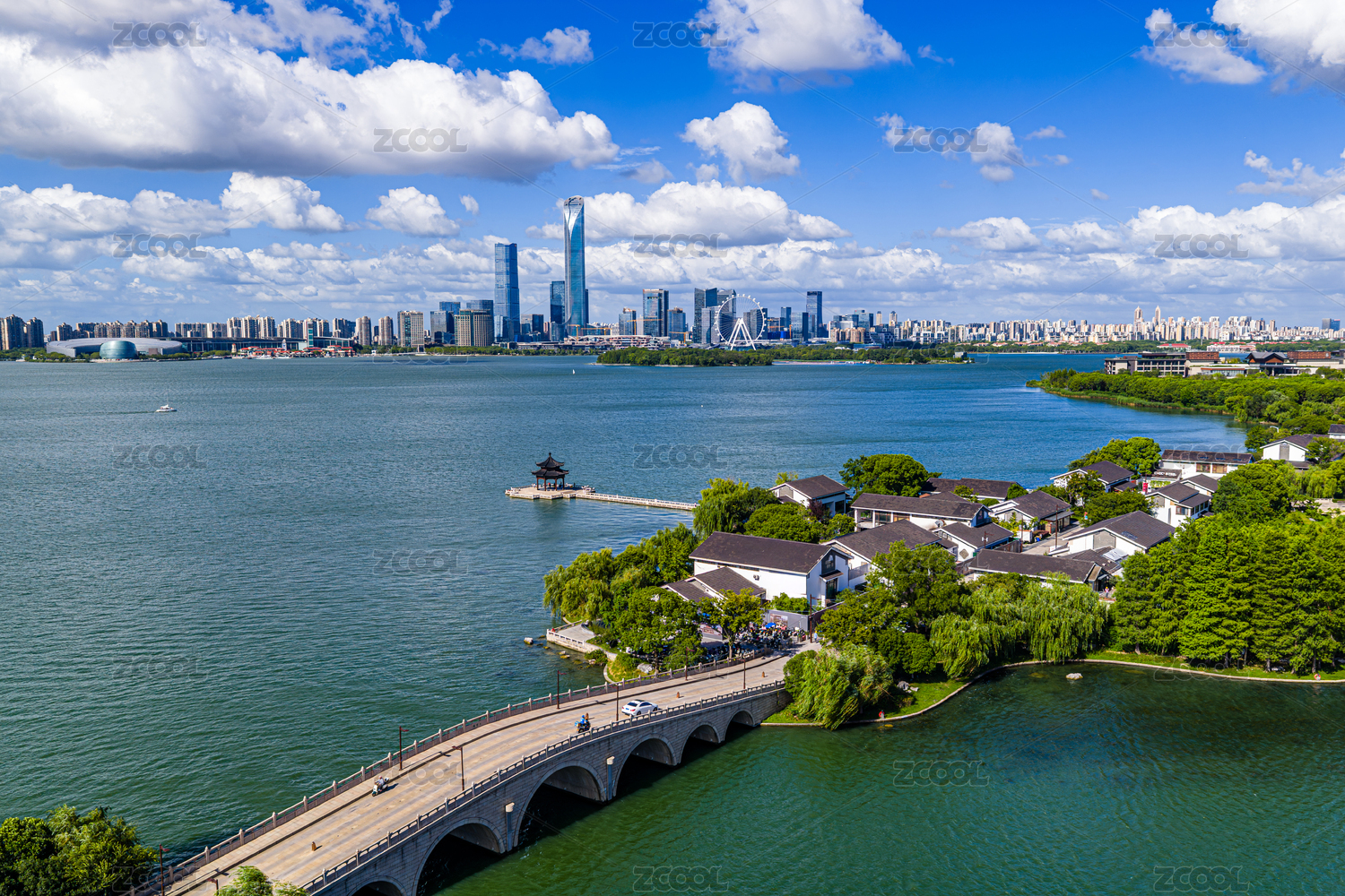 中国,江苏,苏州,金鸡湖,航拍,航拍视角,景区,旅游目的地,风光,环境
