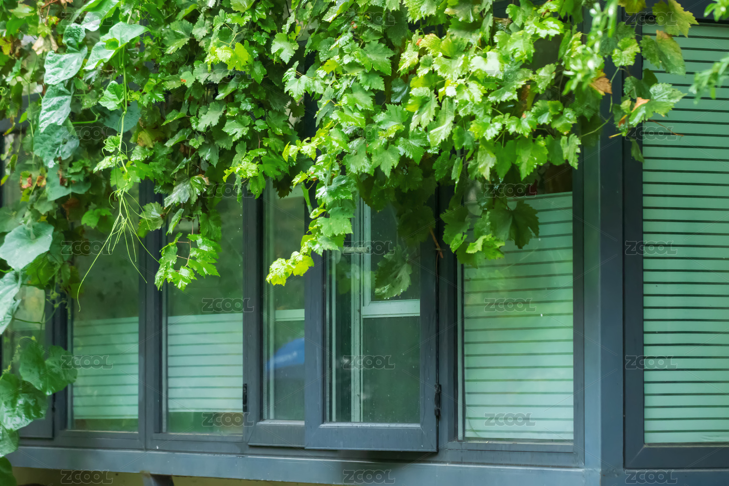 爬墙虎覆盖老房子外墙垂直绿化藤蔓夏日景观