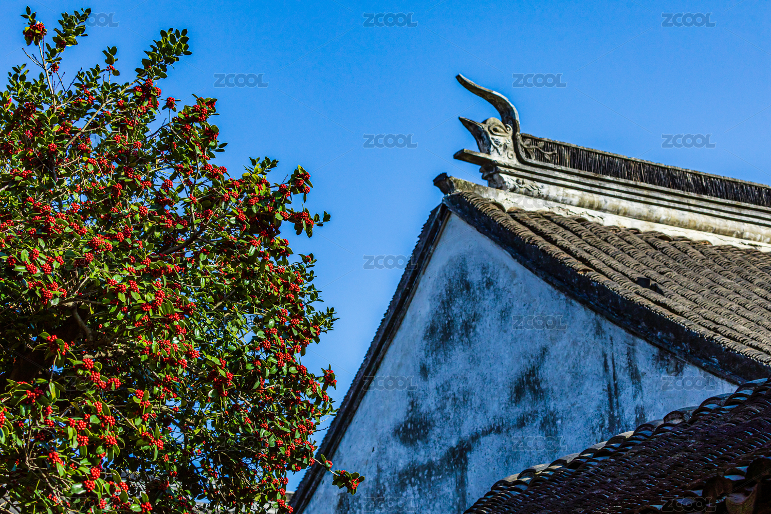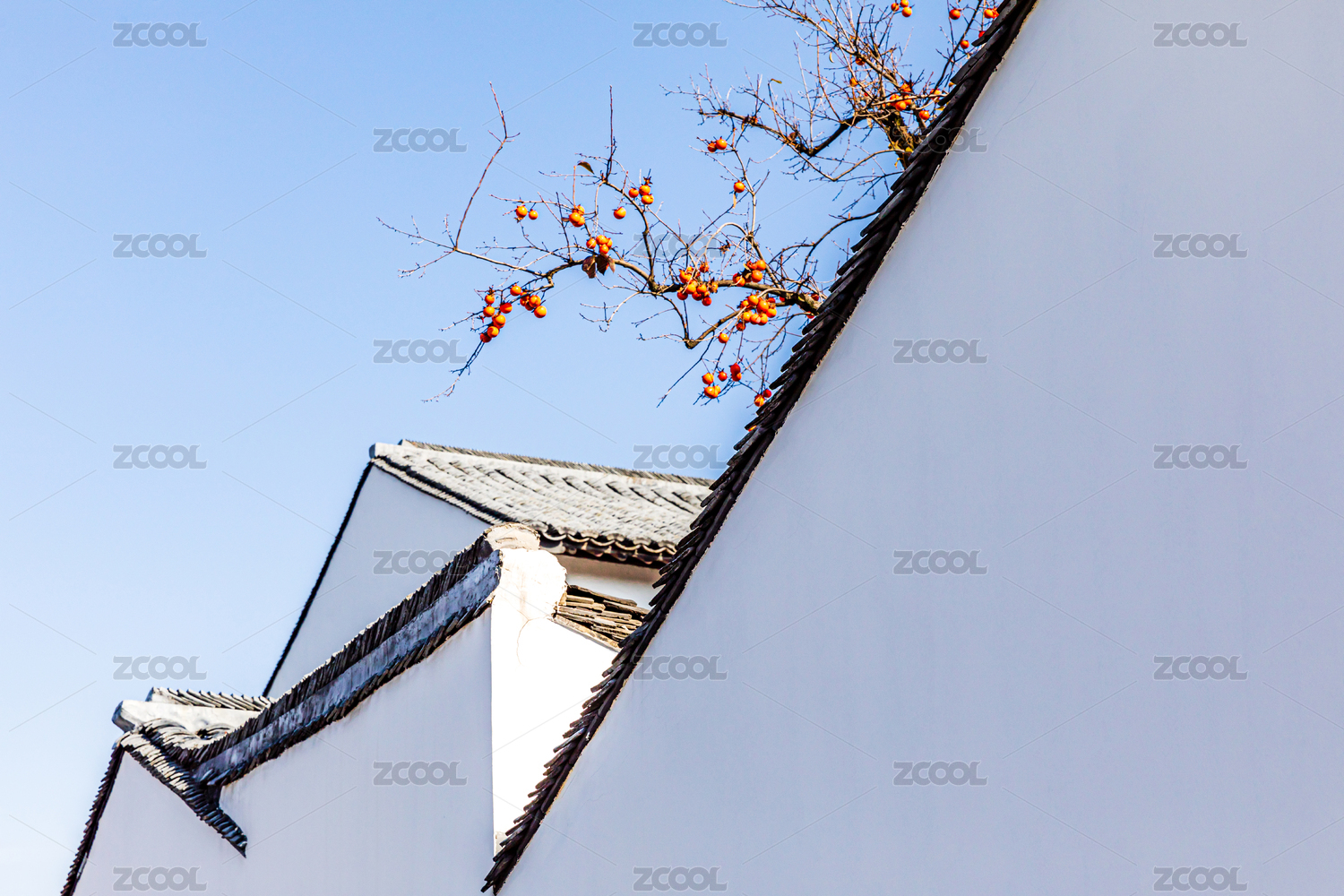 中国,江苏,苏州,民居,柿子树,建筑,建筑外部,白昼,房屋,晴朗