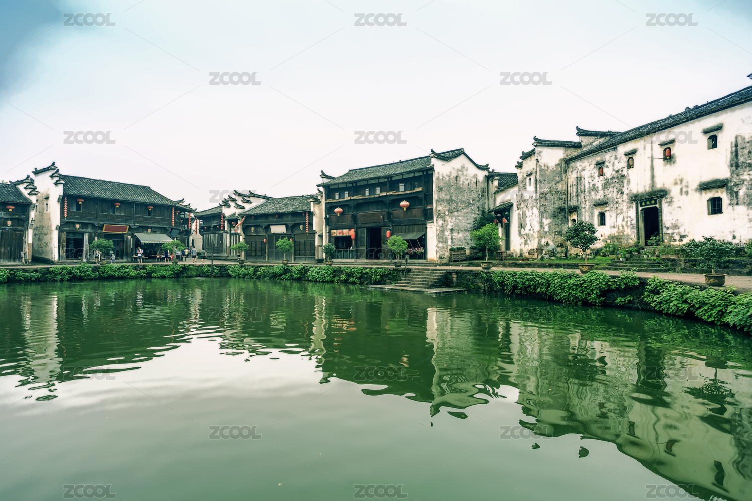 浙江兰溪诸葛八卦村 钟池旁的民居古建筑