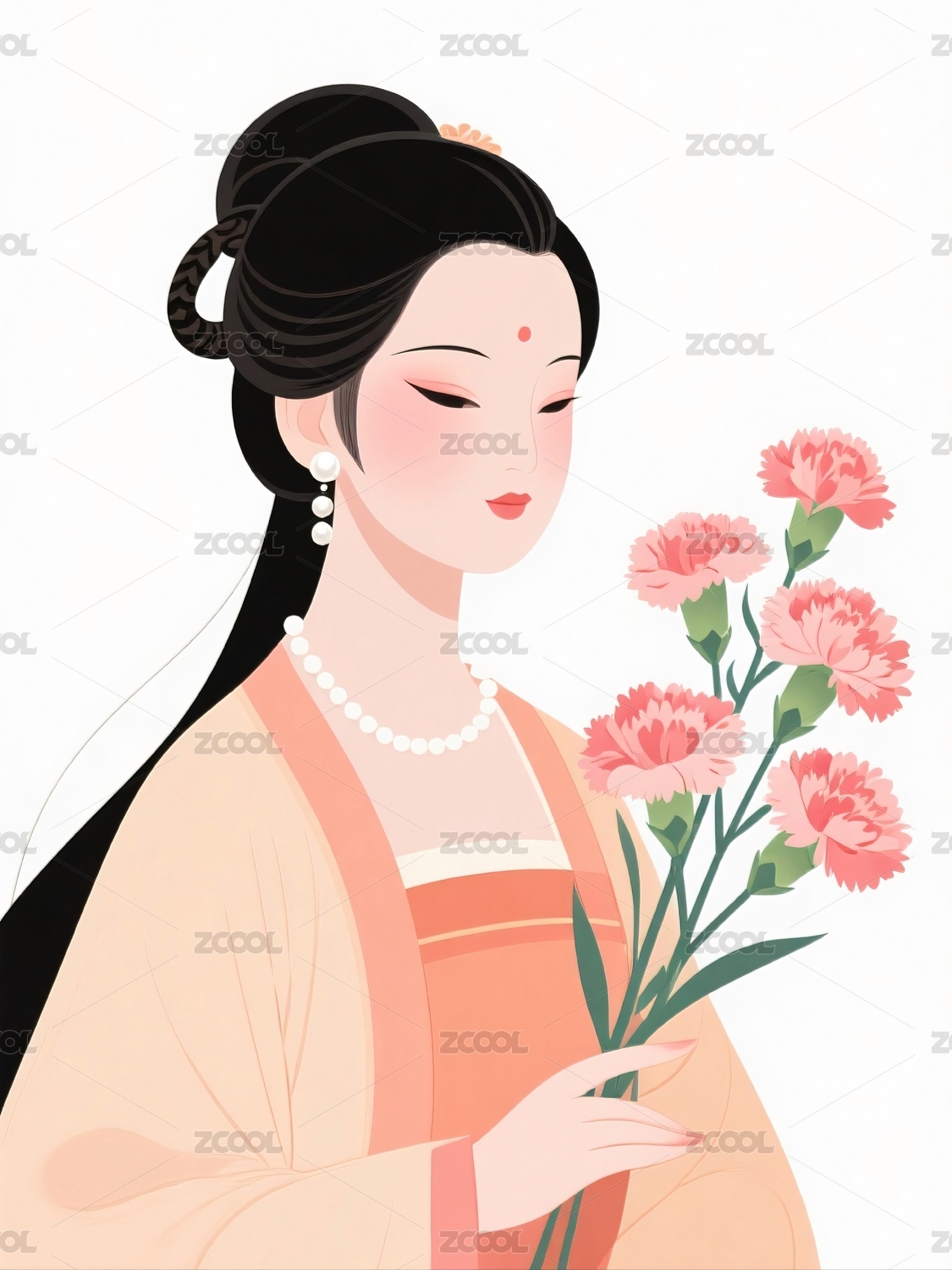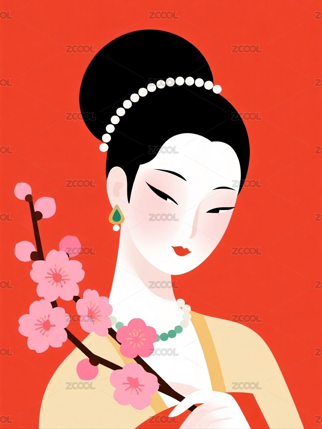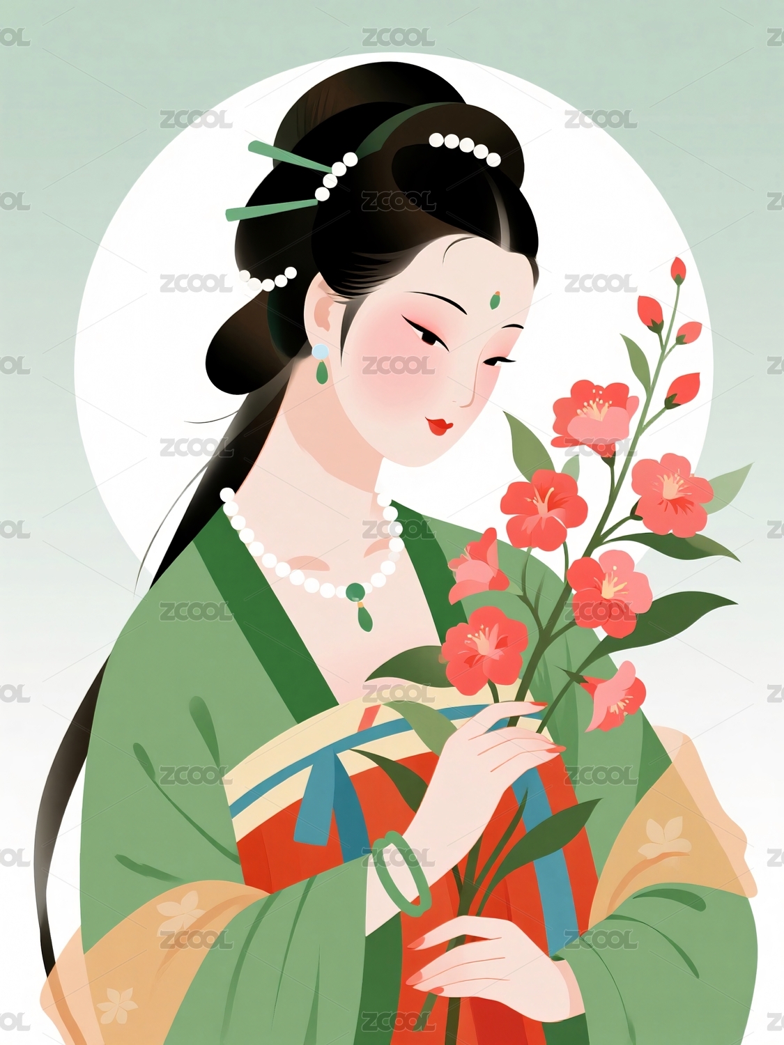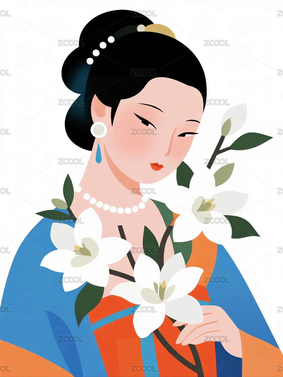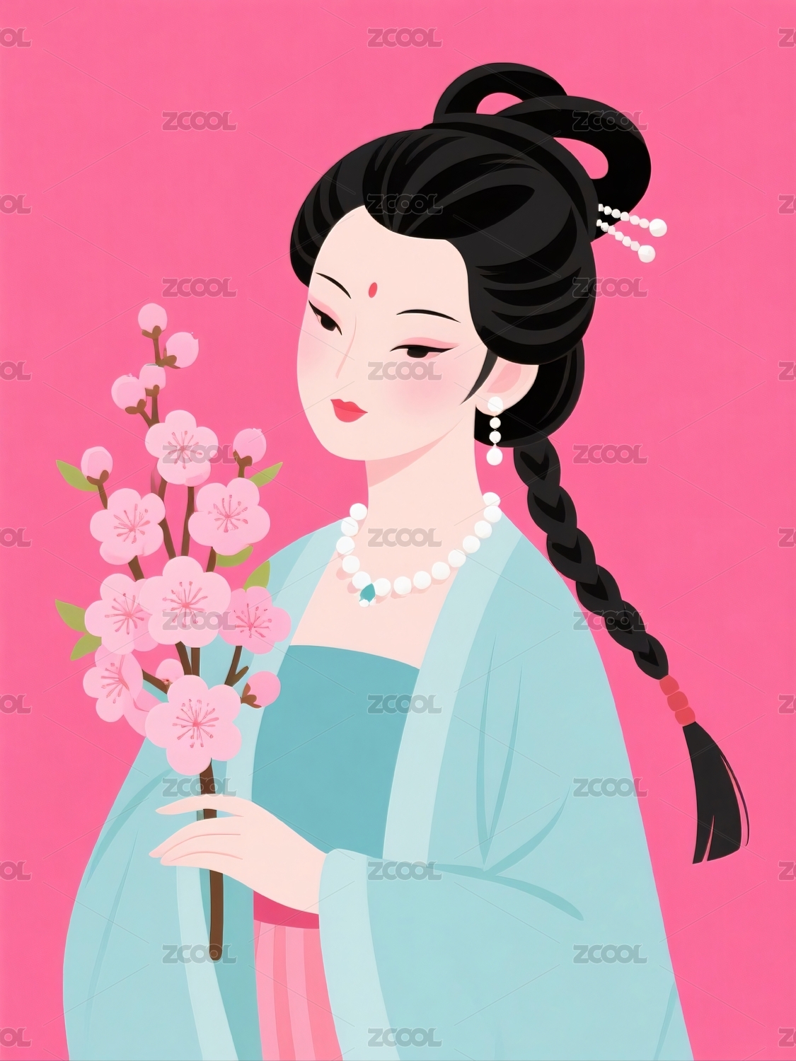 复古,文艺,国民,女子,创意,设计,蓝色,红色,古装,温柔
