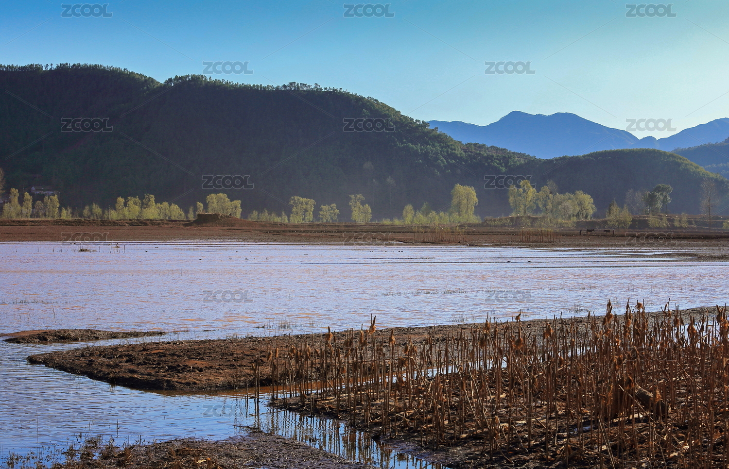四川盐源县与云南宁蒗县交界泸沽湖秋冬景色