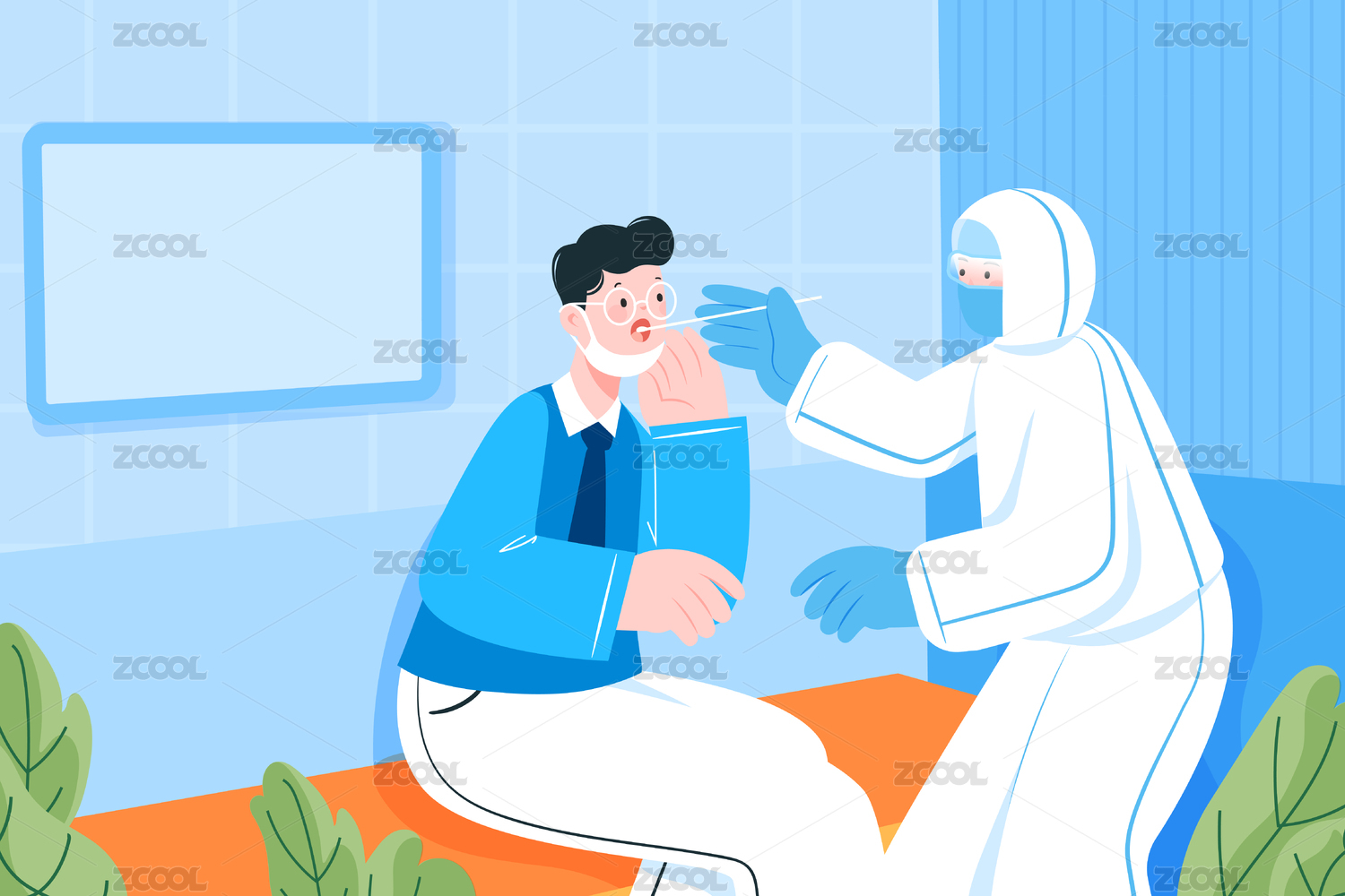 插画,矢量,核酸检测,咽拭子,采样,医疗,医护,医生,群众,病毒