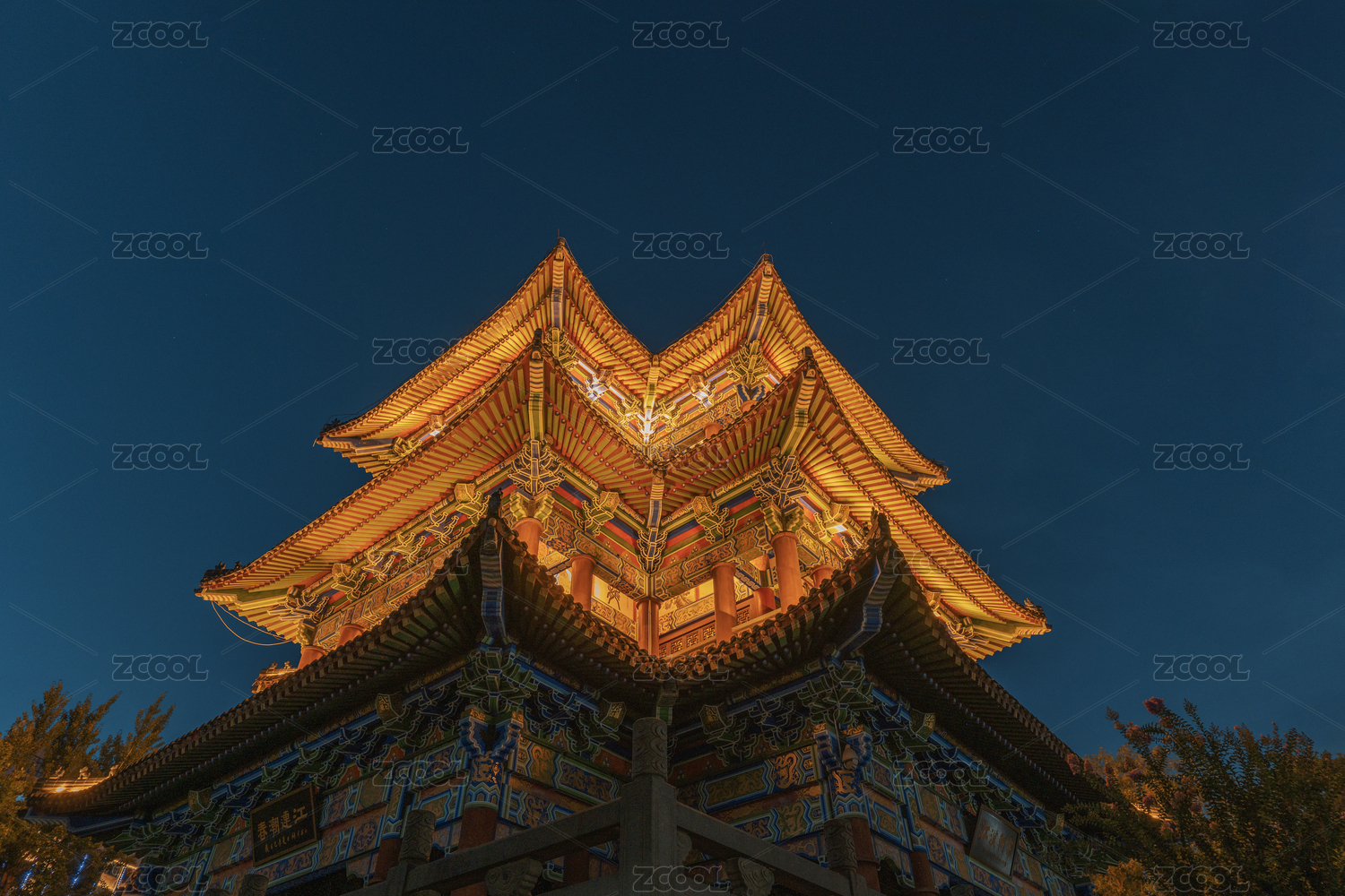 武汉龙王庙公园龙王阁蓝调时分夜景