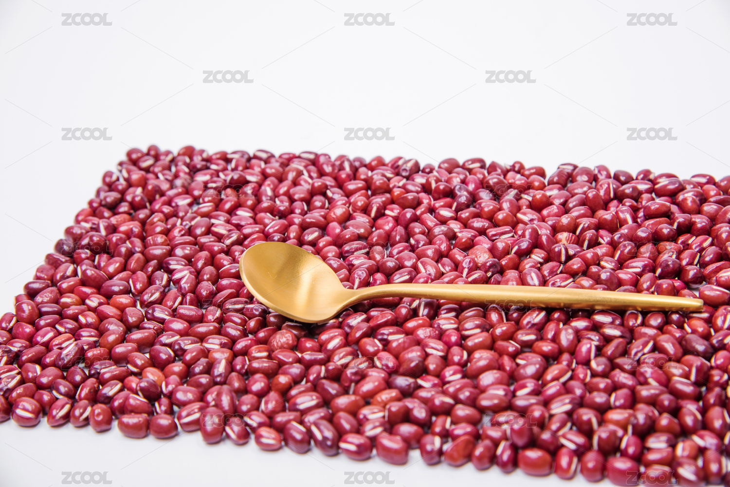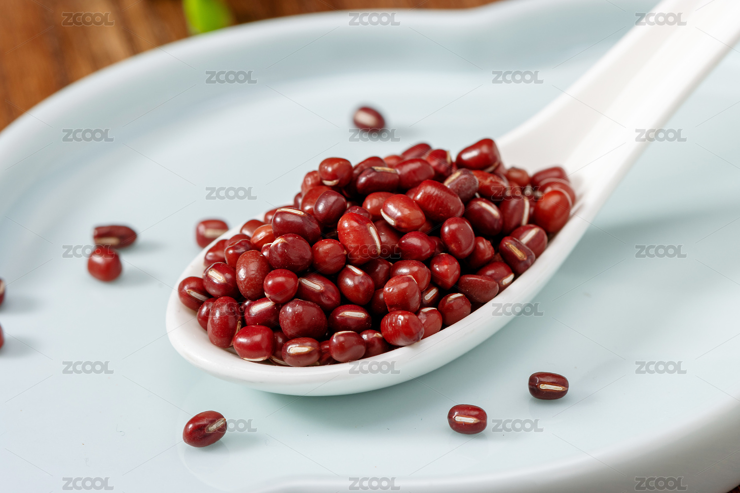 白底木勺上的红豆