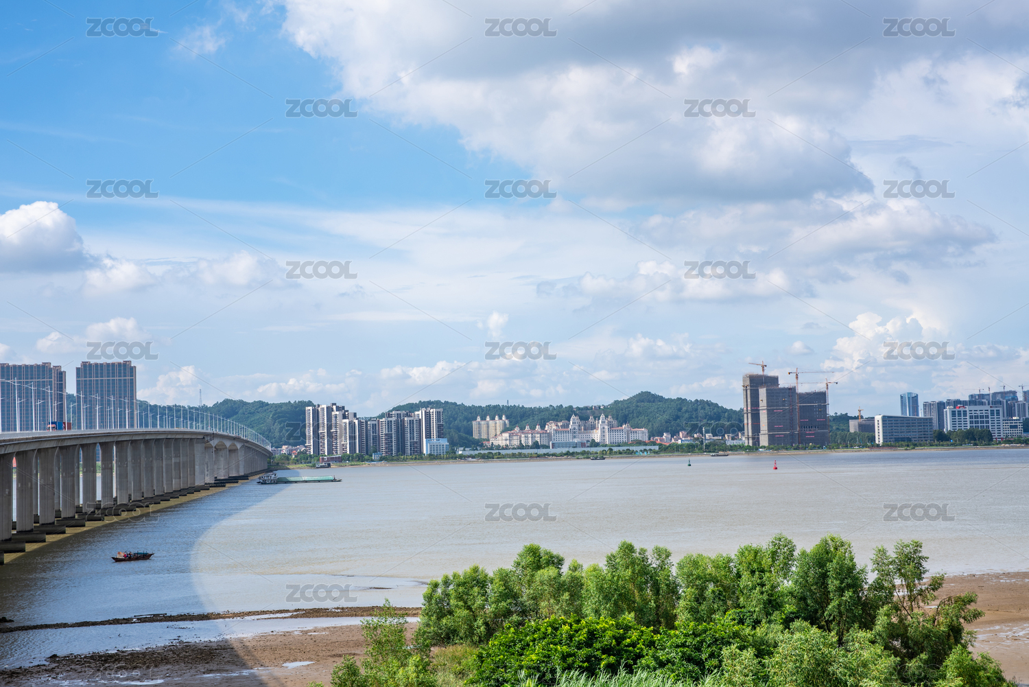 中国,福州,马尾区,东江滨,三江口,城市,金色,风景,风光,蓝天