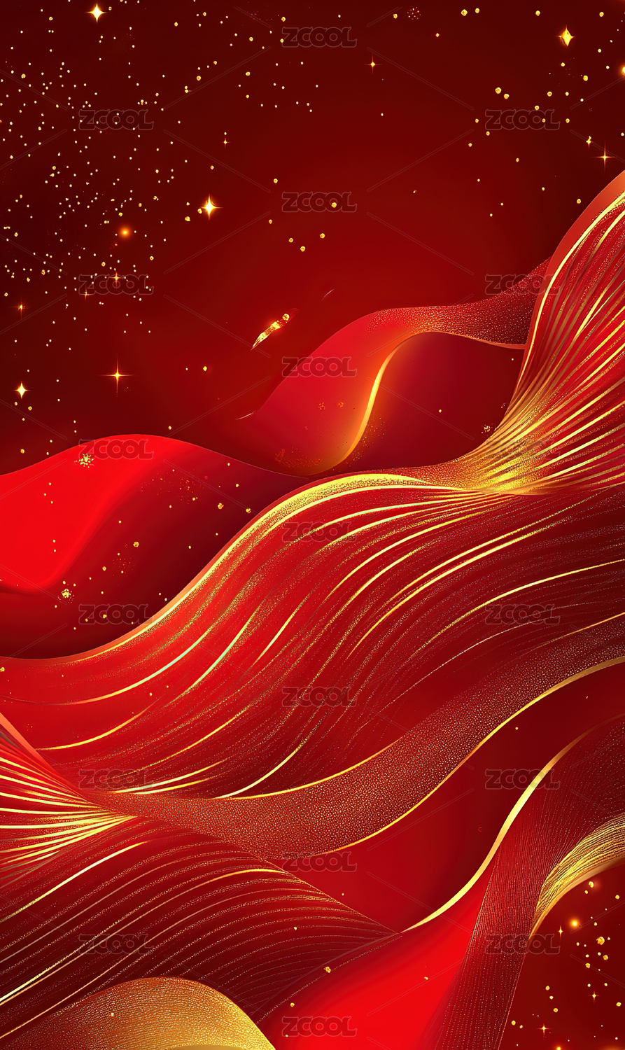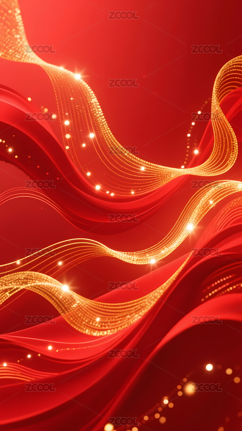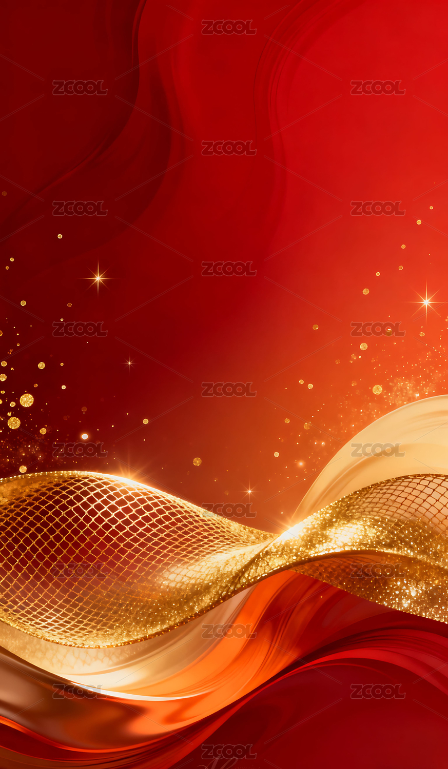 商务庆典红色丝绸绸缎金色光效主视觉背景