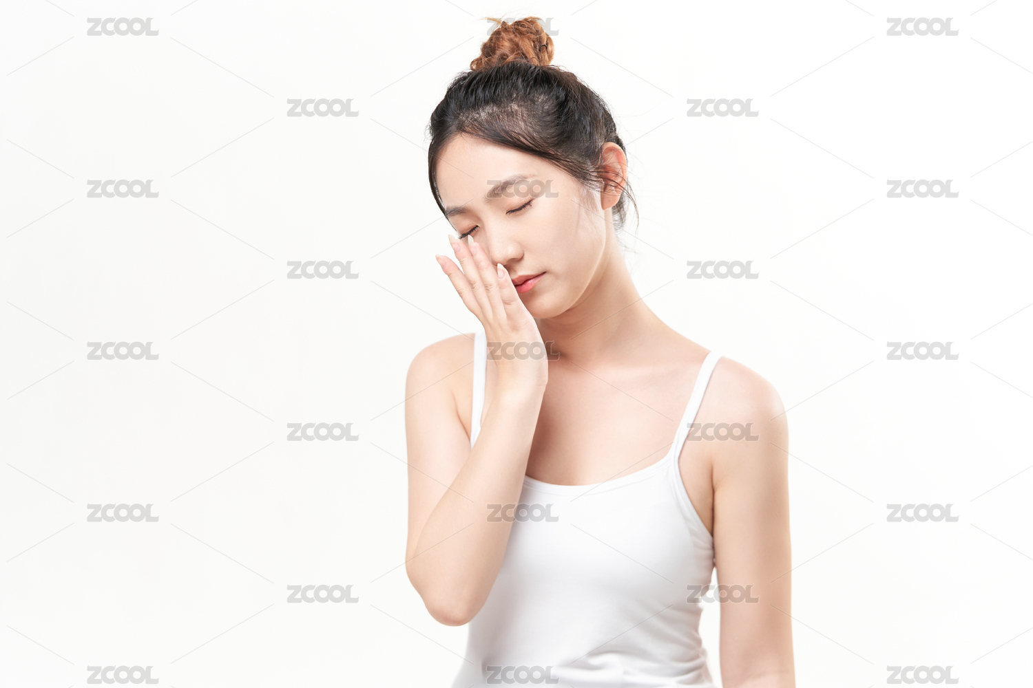 年轻女性闭眼护肤
