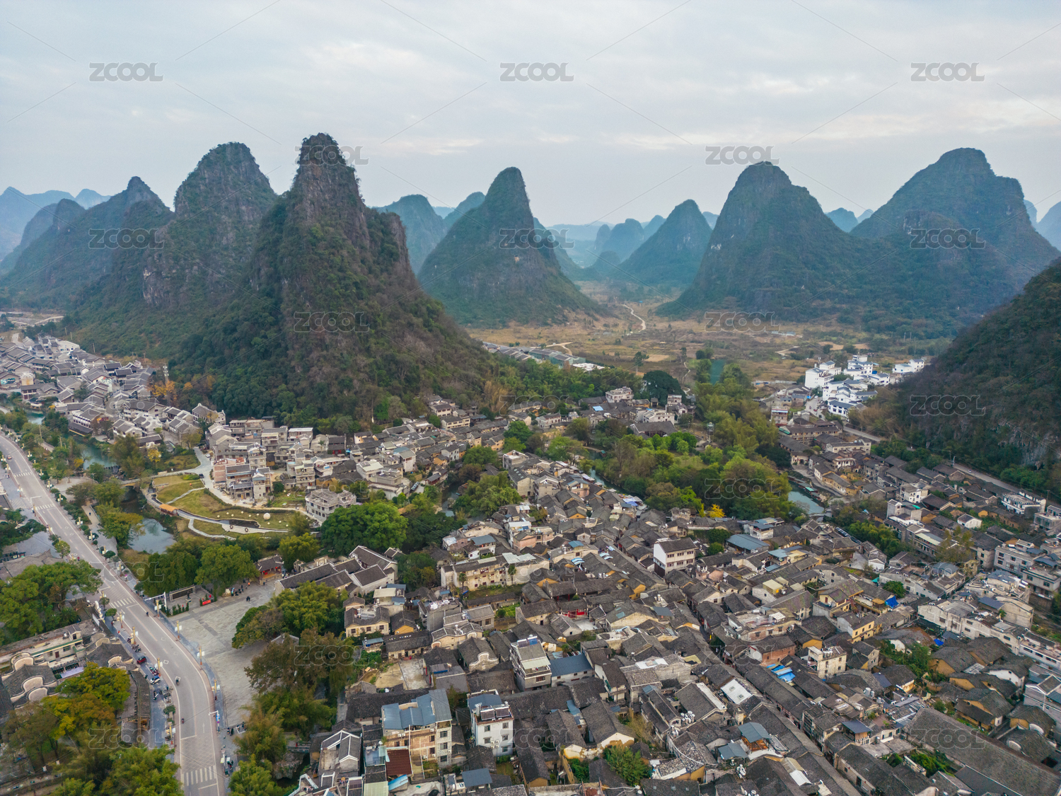贺州,航拍,小镇,建筑,风光,城镇,黄姚镇,黄姚古镇,古镇风光,建筑风光