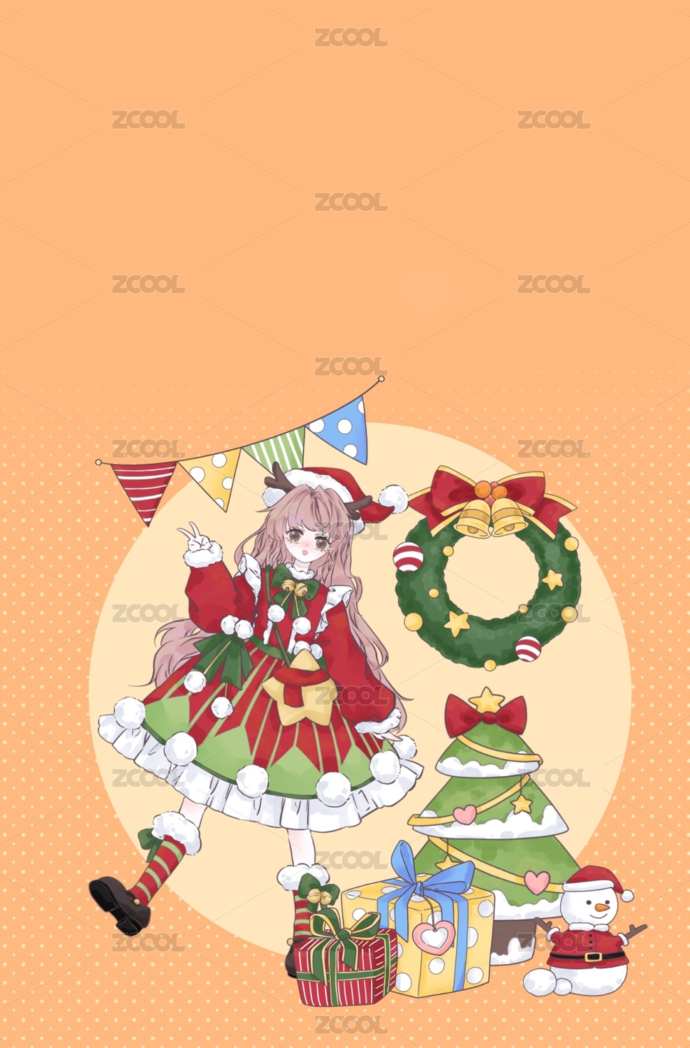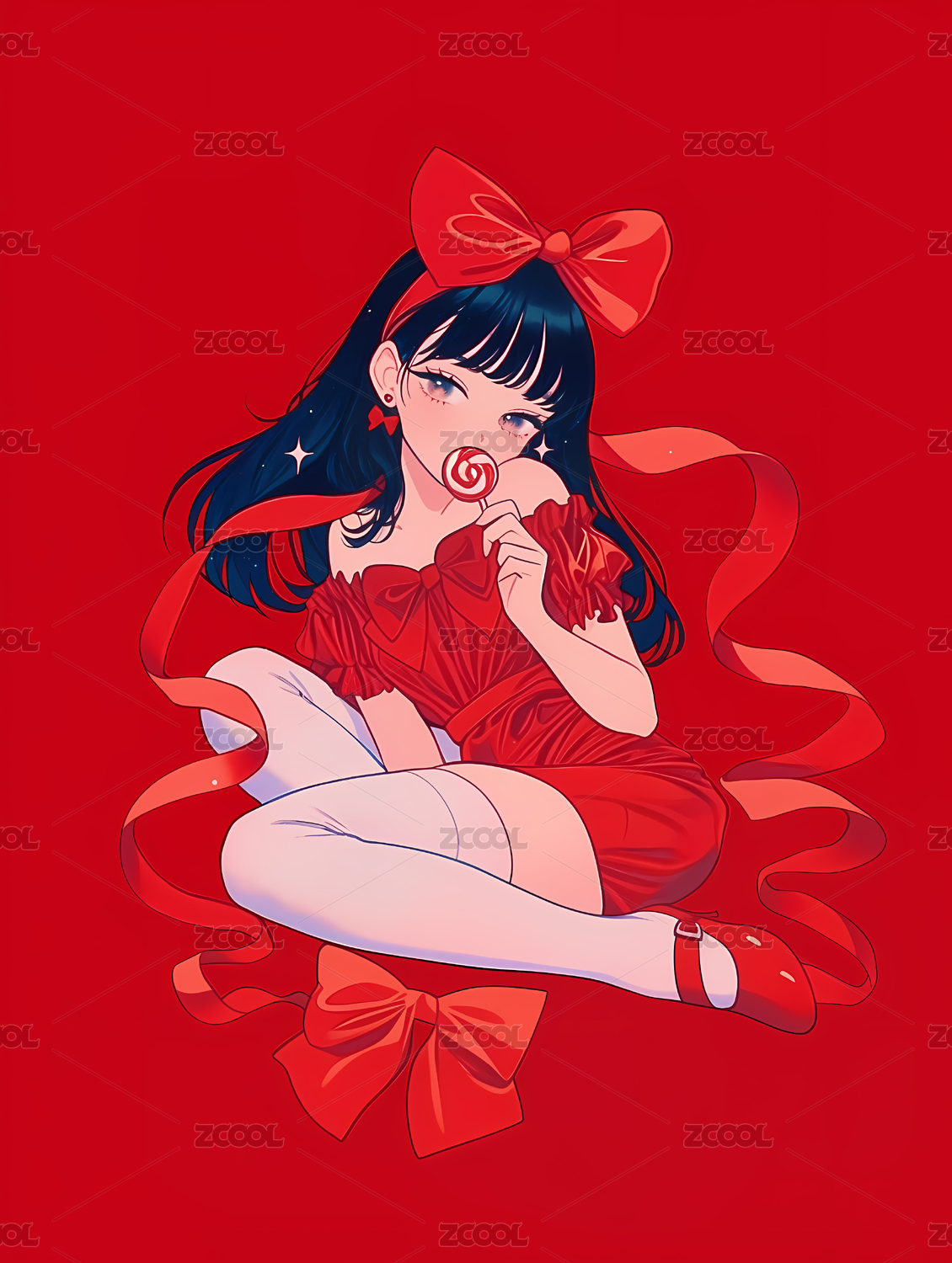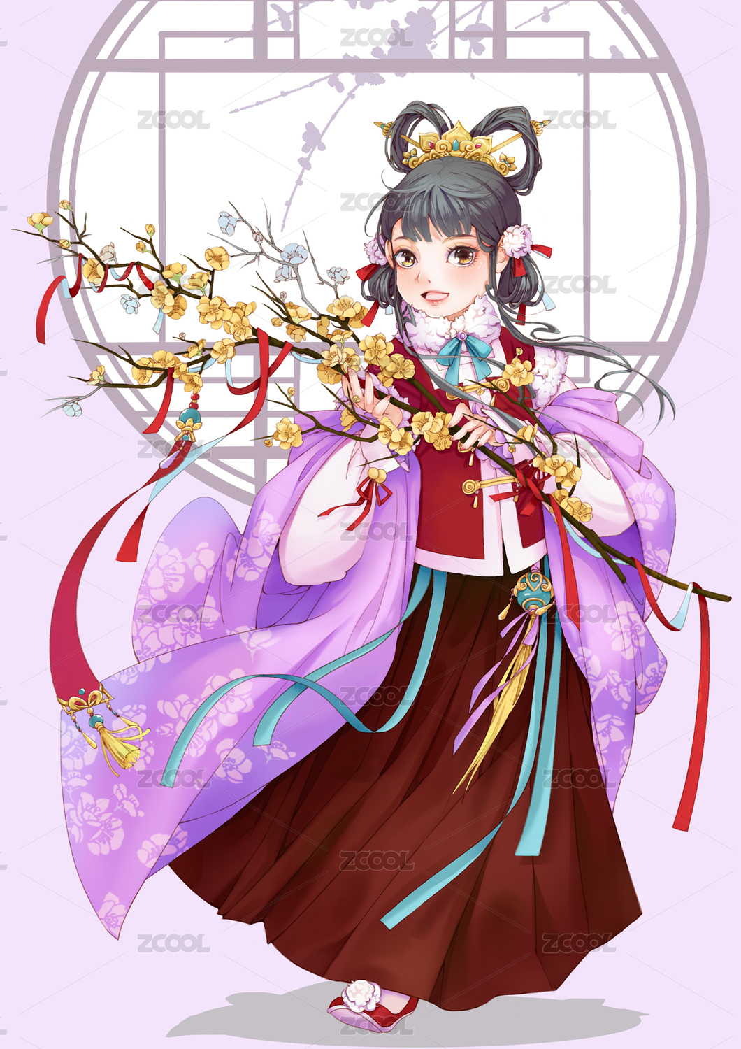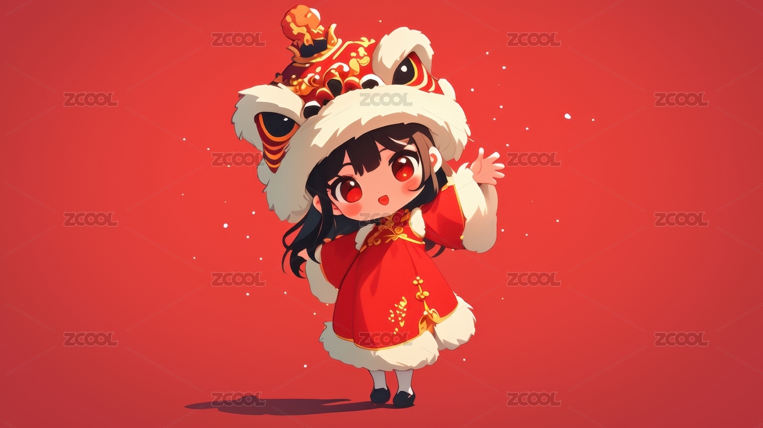 插画,全身像,欢乐,虎年,新年,喜庆,萝莉,女孩子,女孩,少女