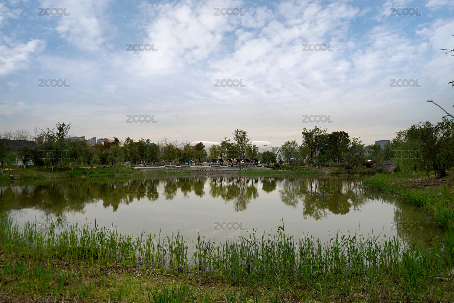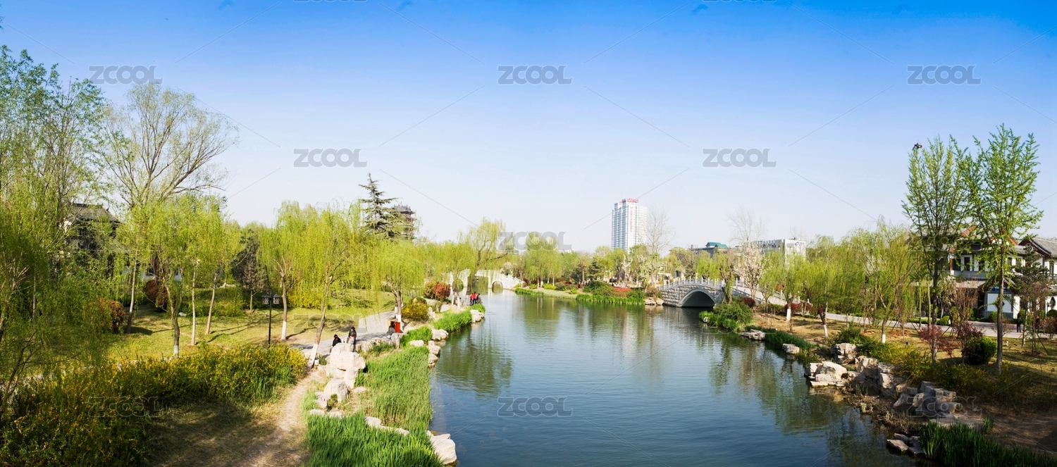 四川成都城市河流浣花溪及两岸园林绿化景观