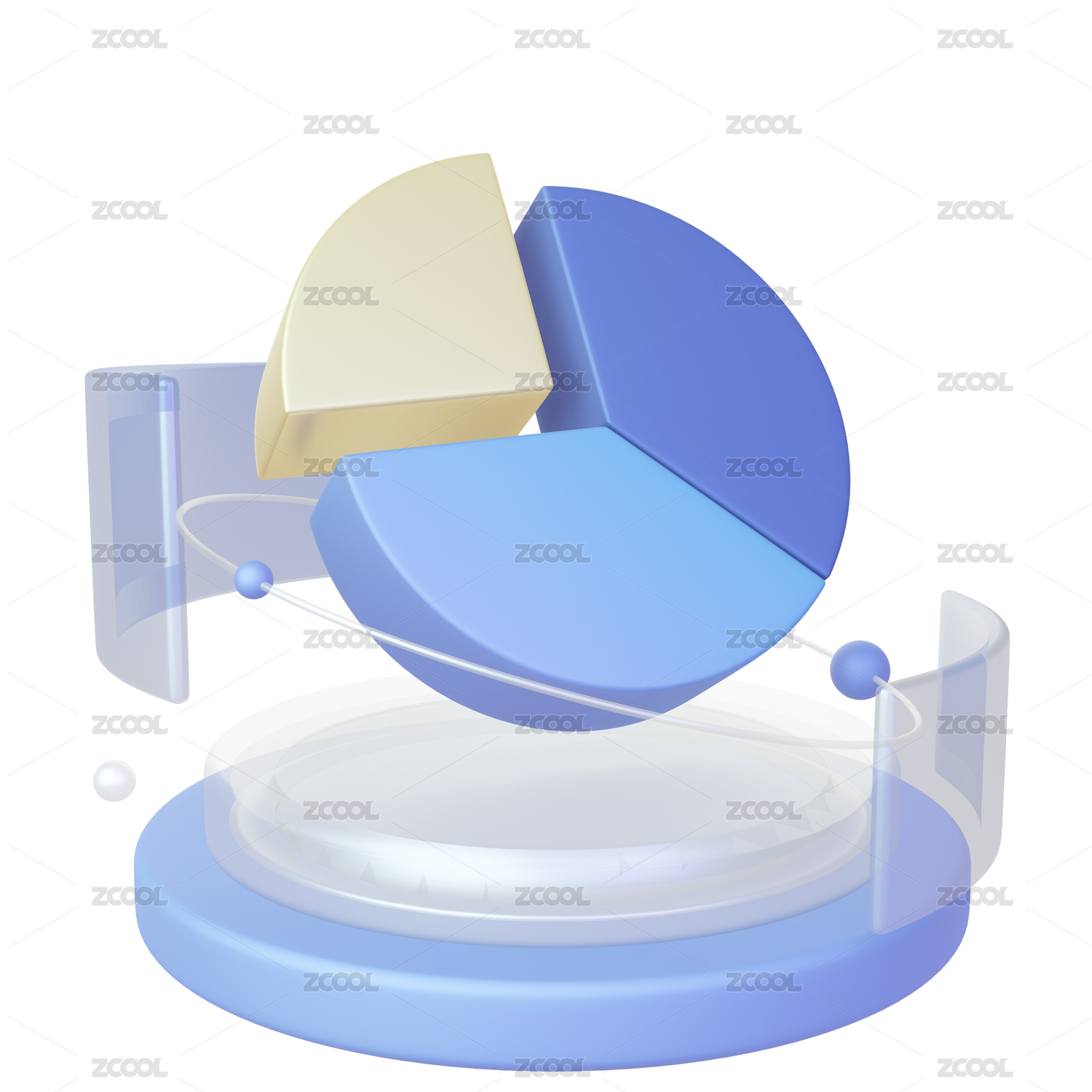 3D蓝色毛玻璃金属材质缺省插画