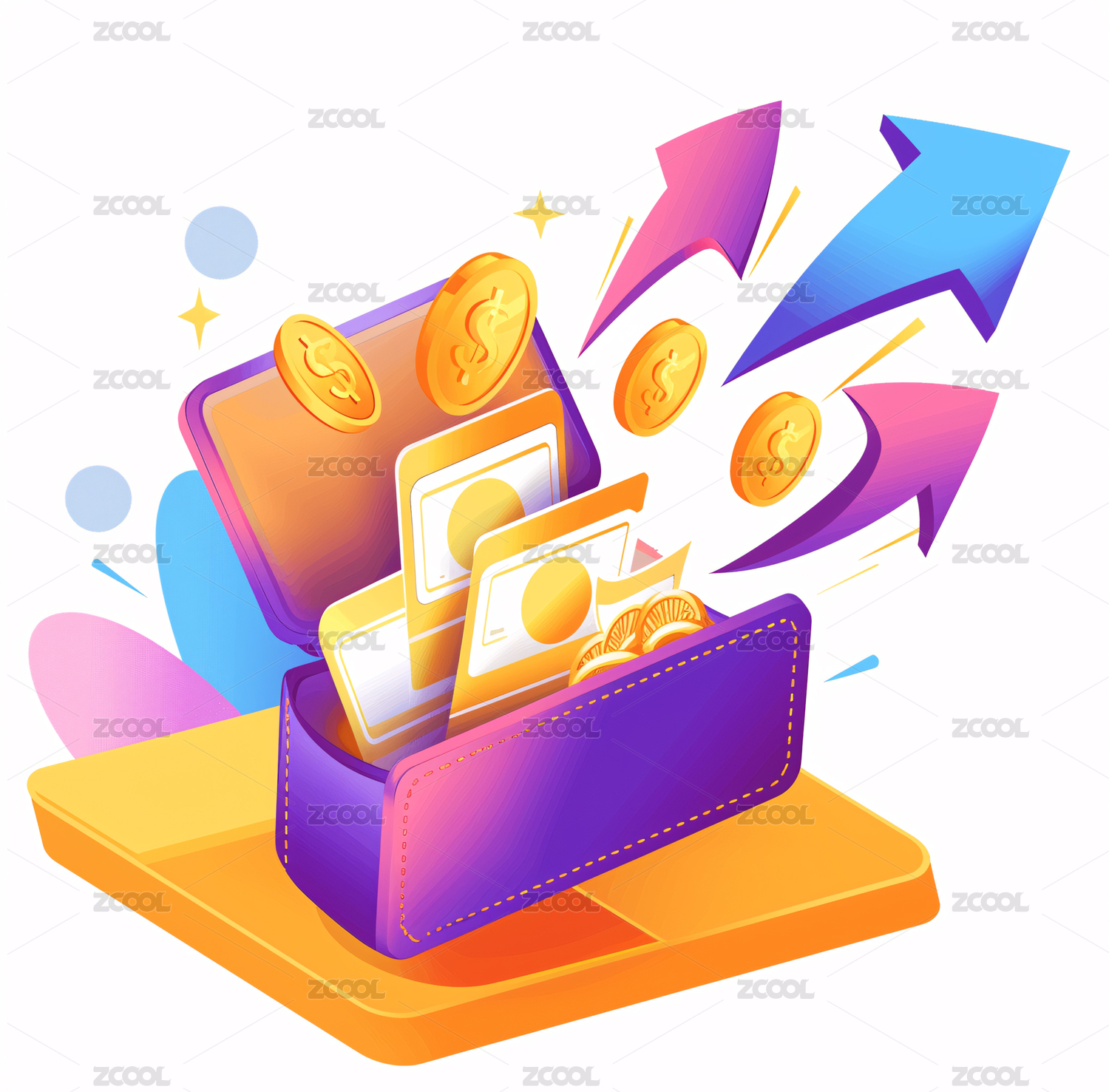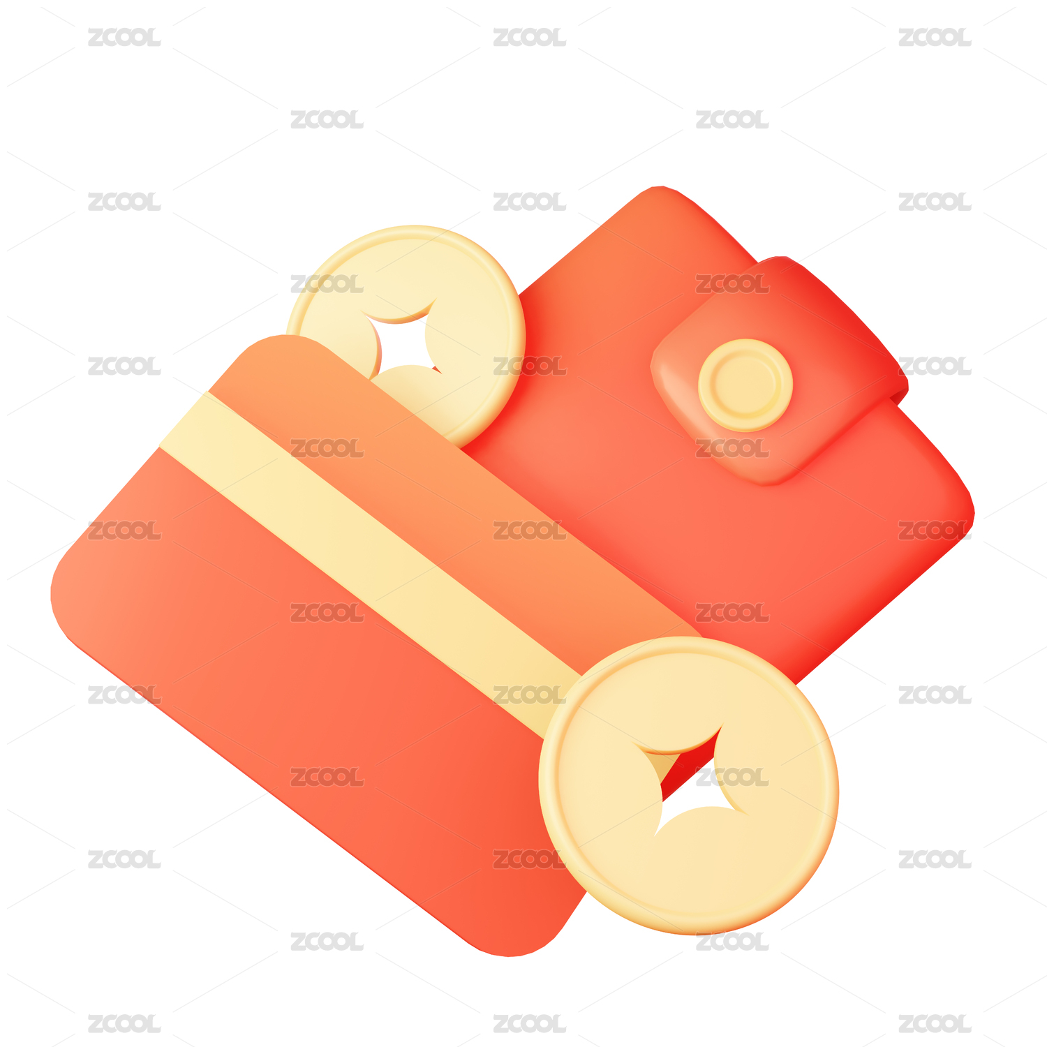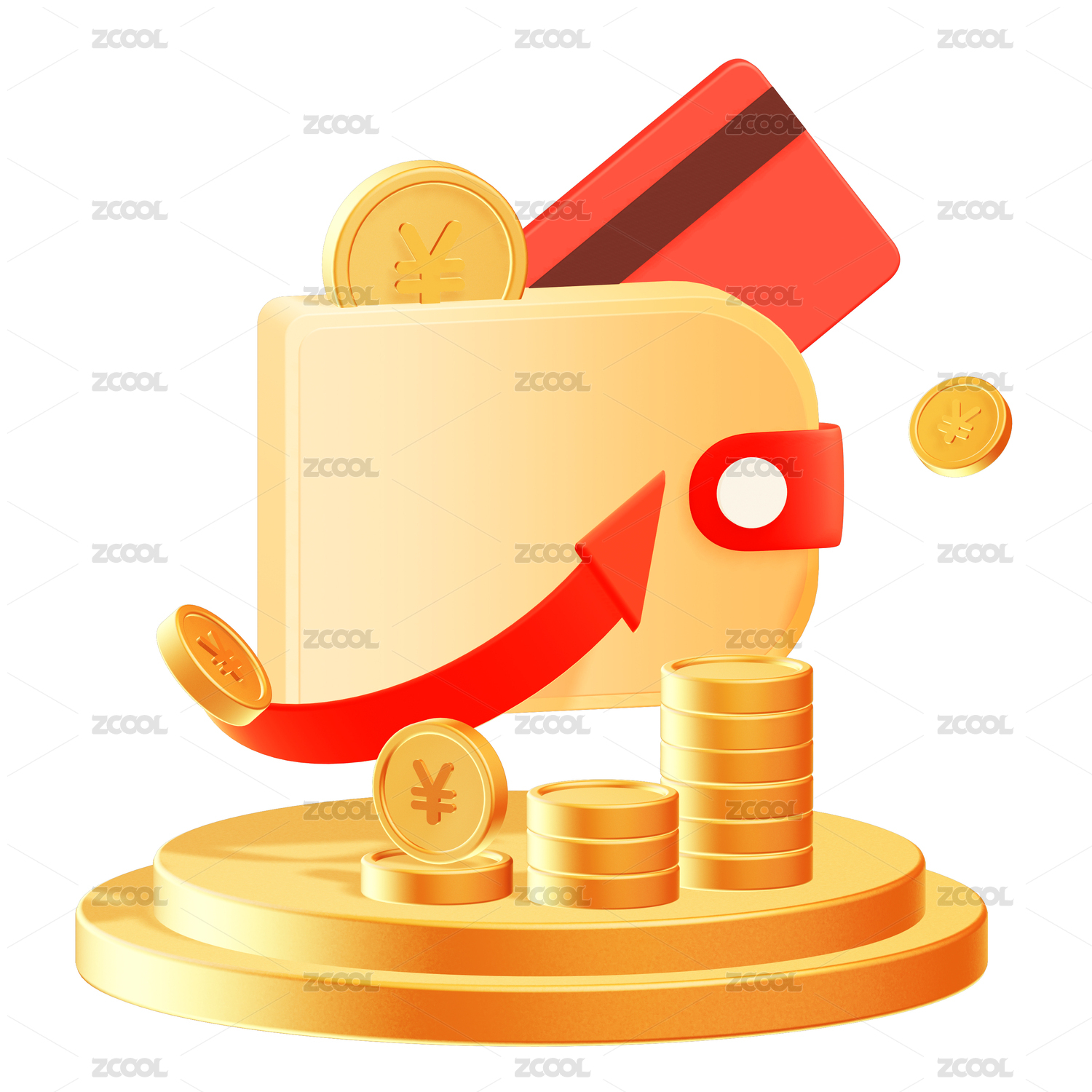 红金色喜庆理财促销储蓄钱包3d立体插画