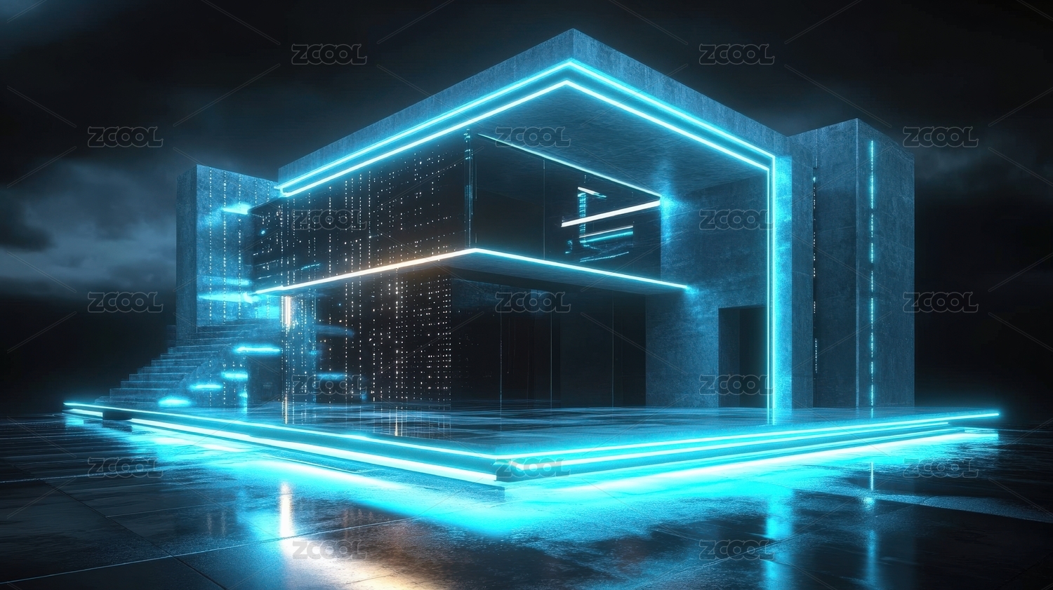 未来主义霓虹建筑结构