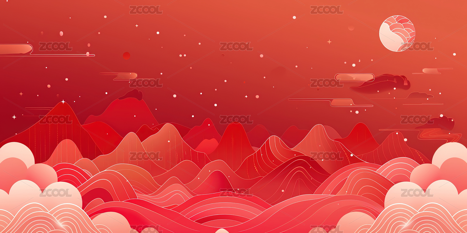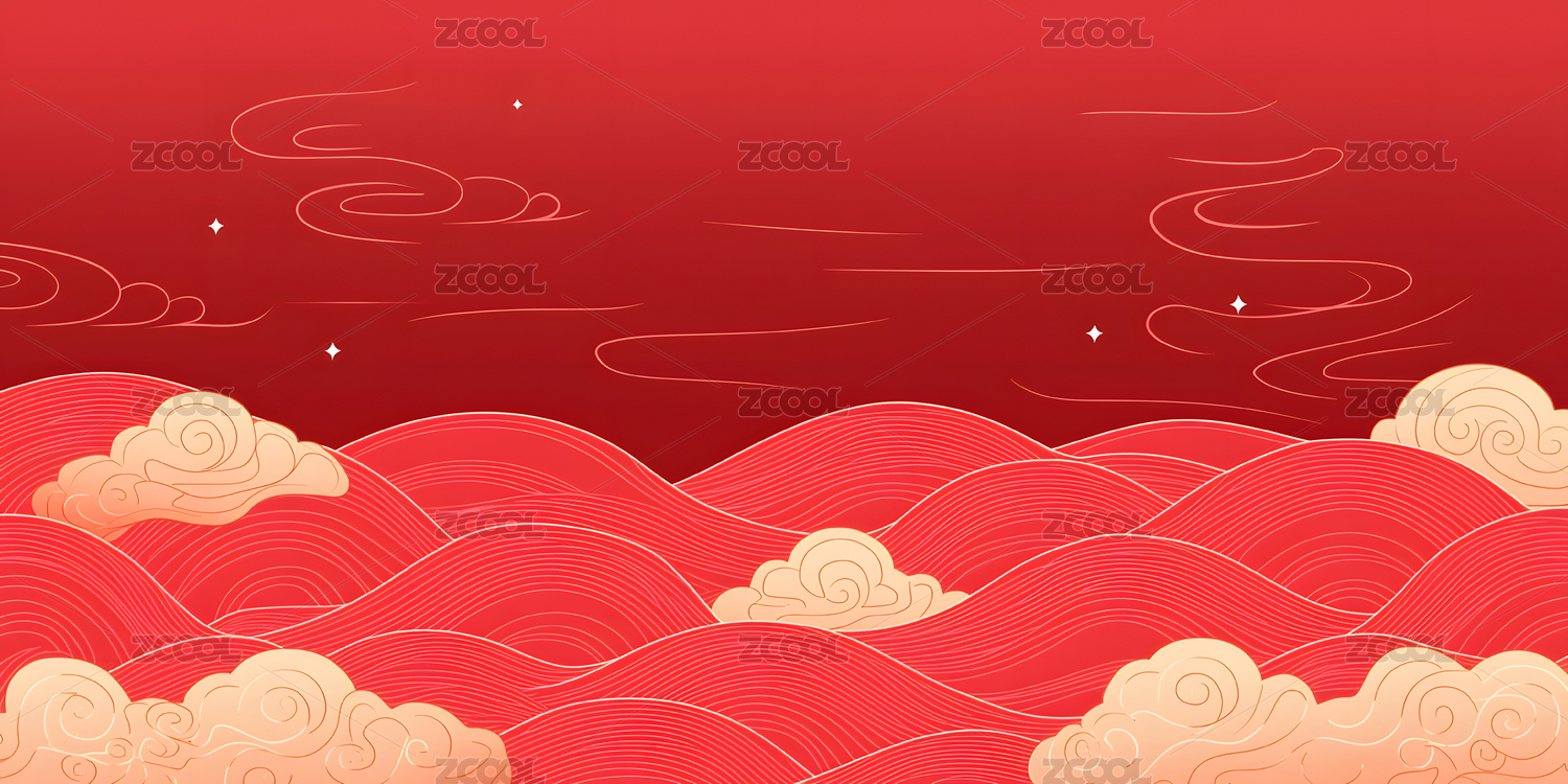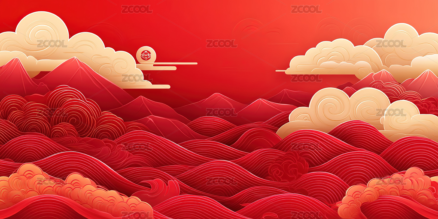 中国风红色山峦云海图