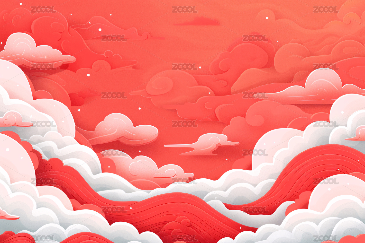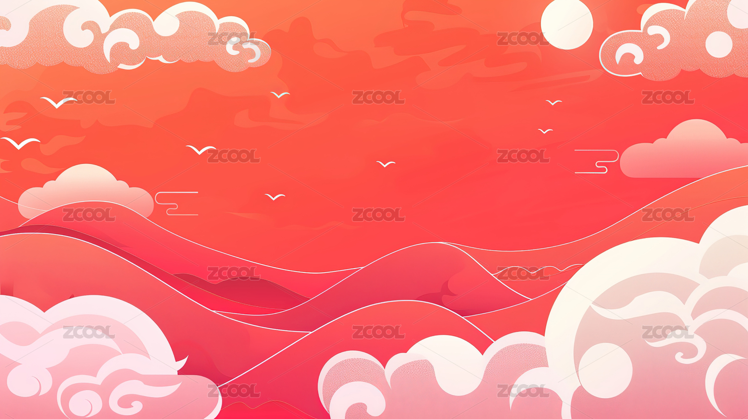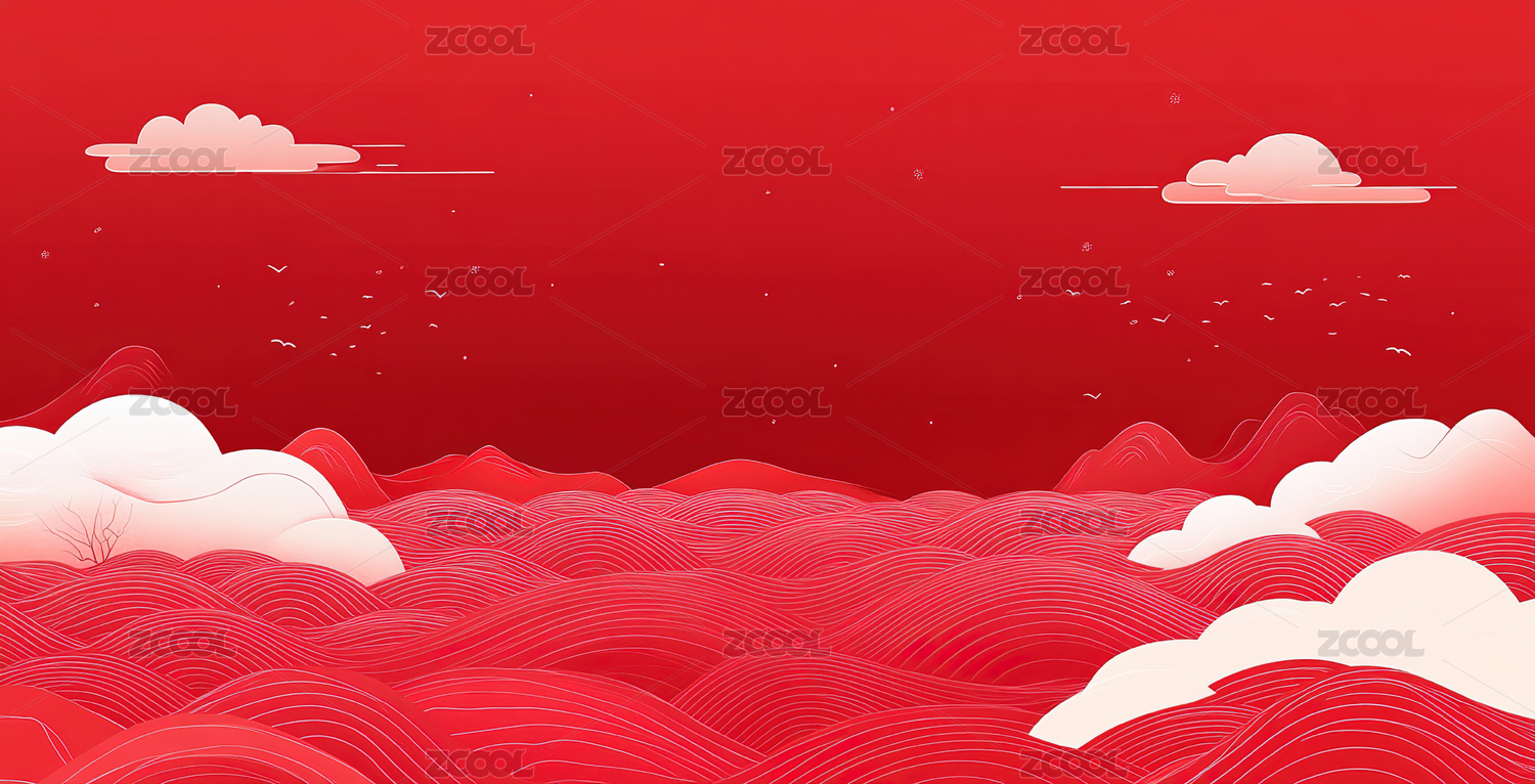 云朵红色插画背景