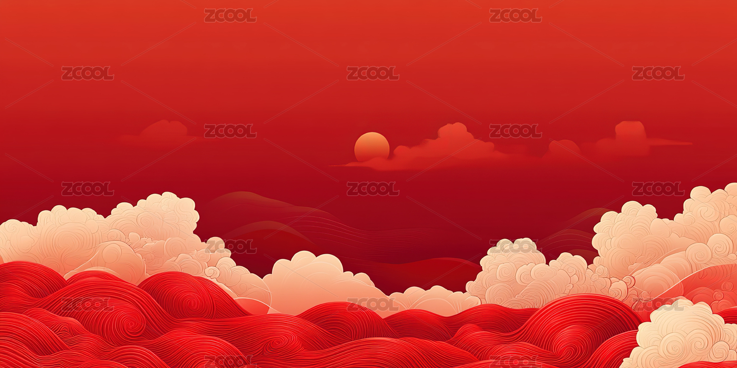 中式传统祥云喜庆节日背景插画