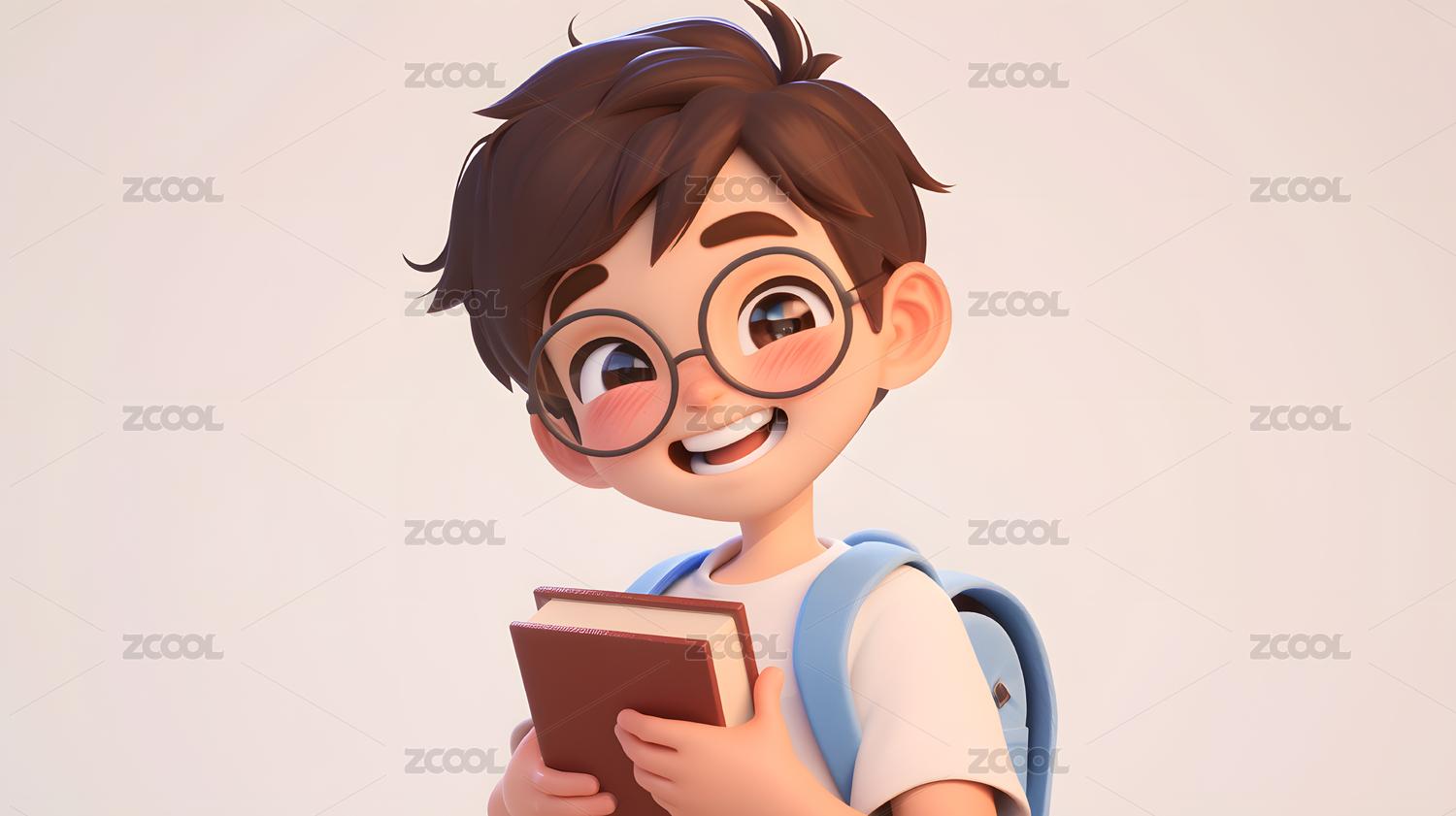 3D卡通可爱男学生插画