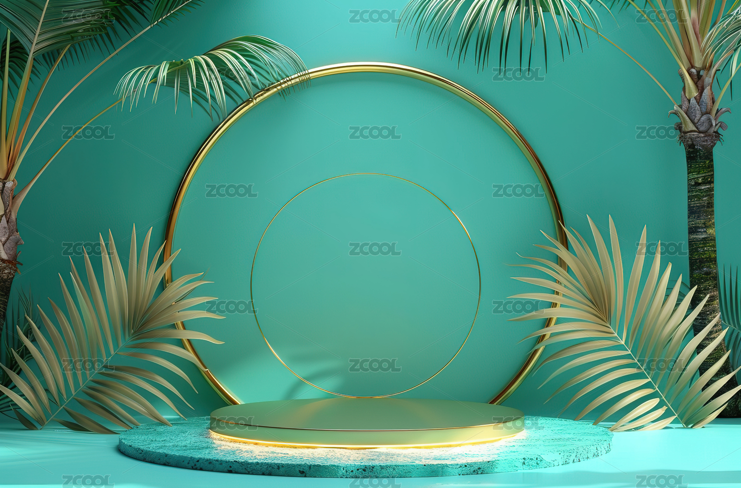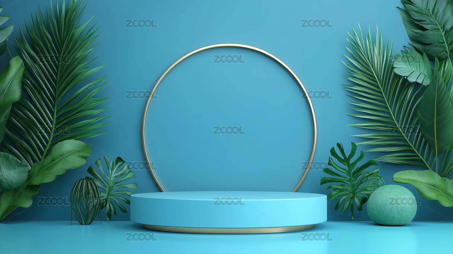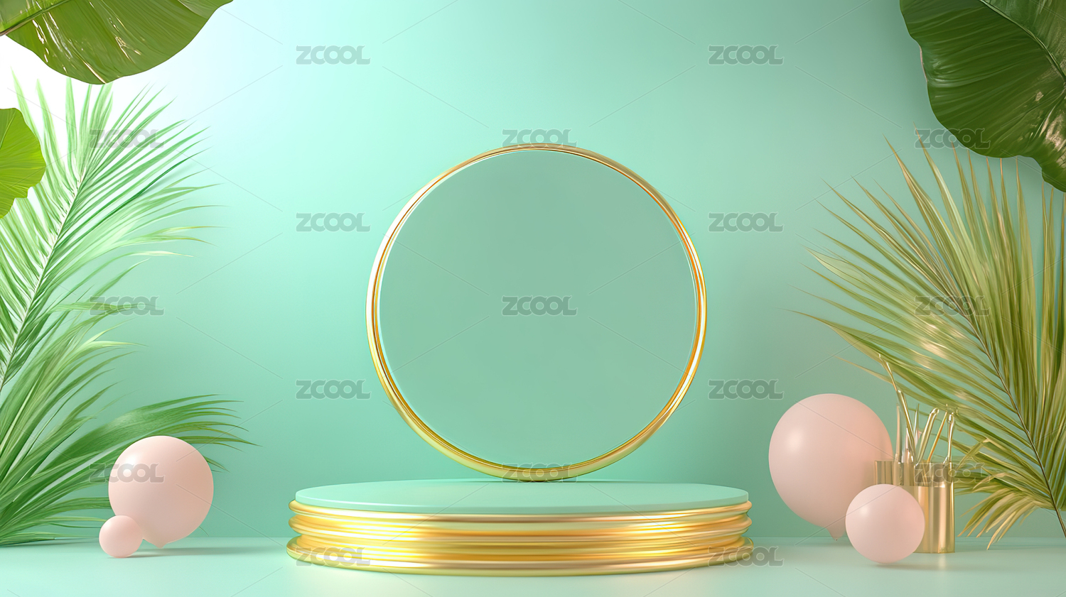 3D渲染静物产品展台绿色植物电商背景素材