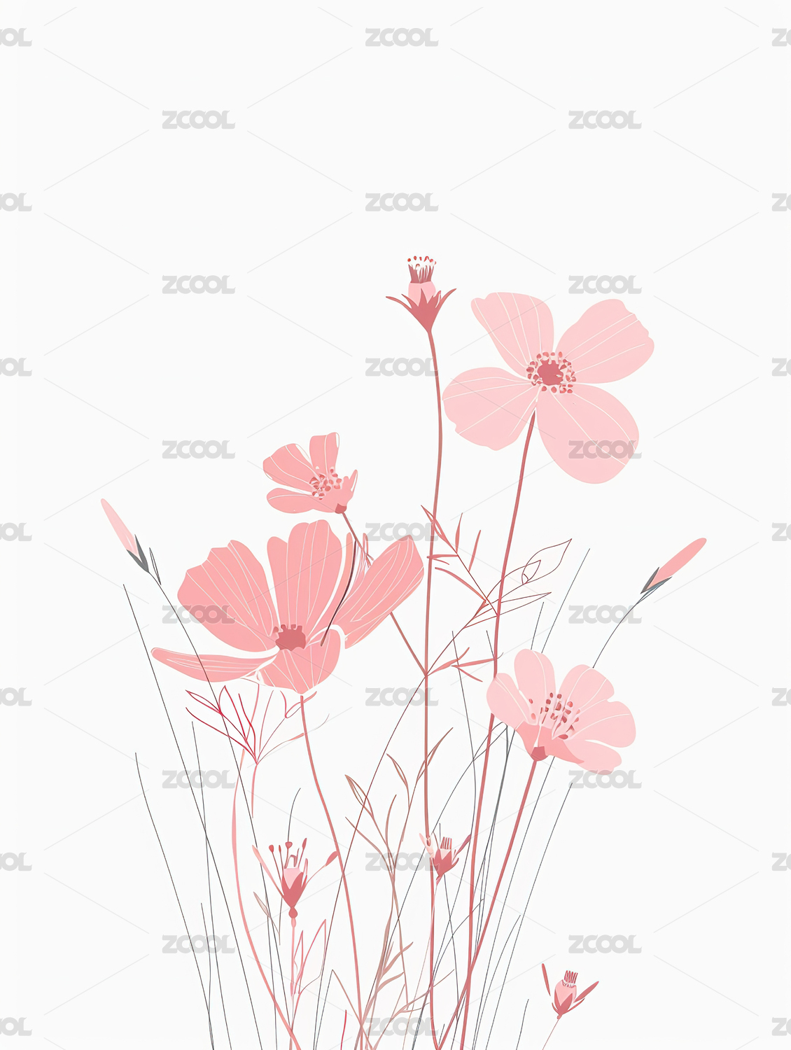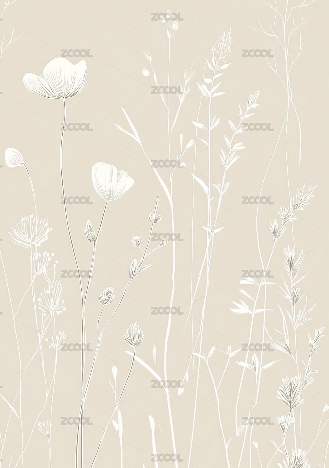 简约白色花卉插画