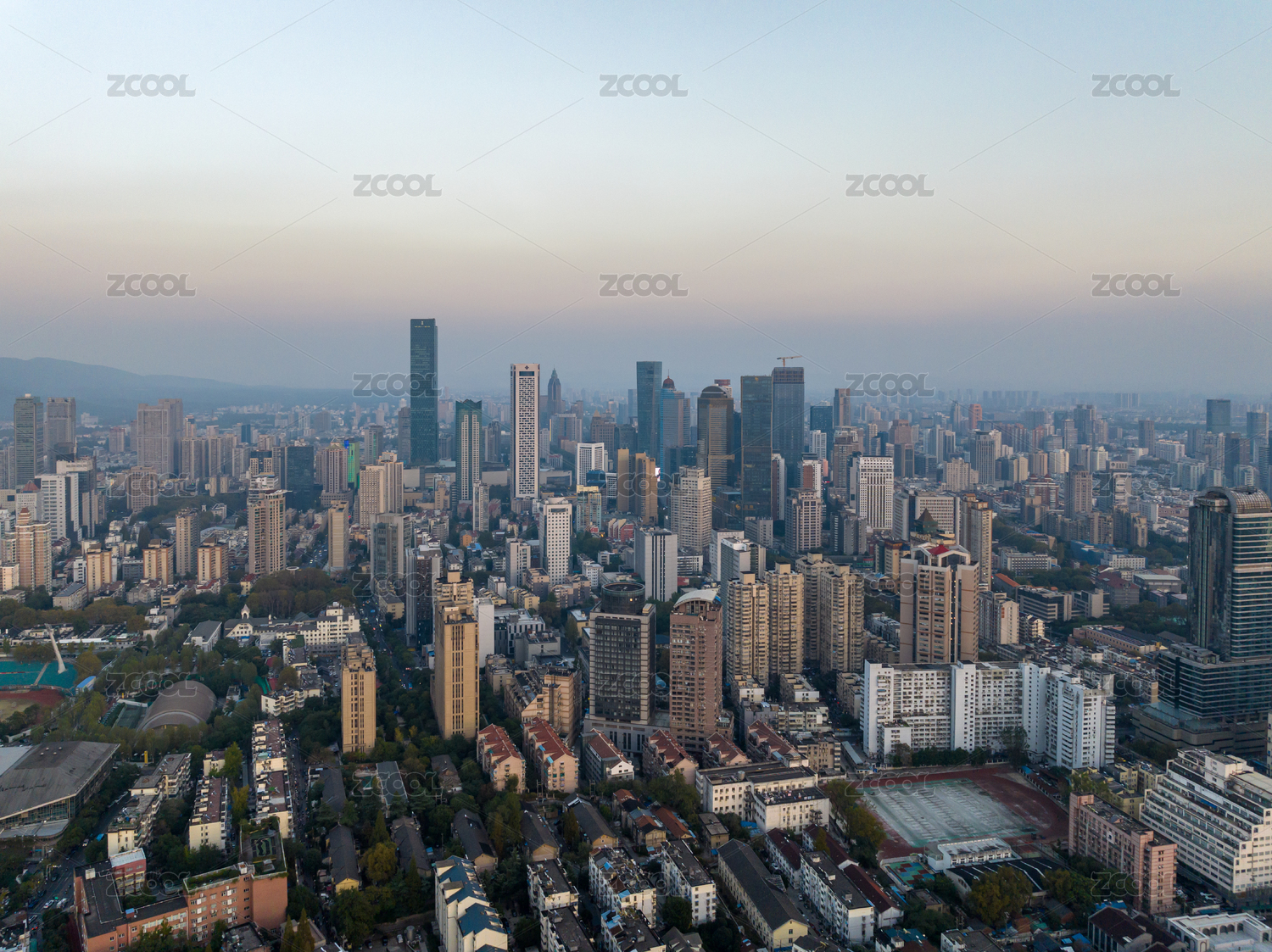 浙江省杭州上城区城区秋石高架晨曦航拍