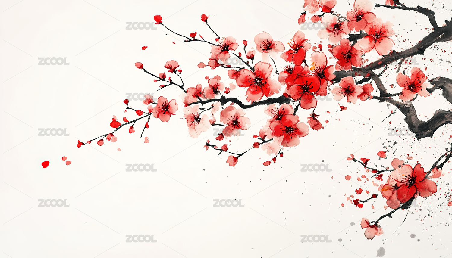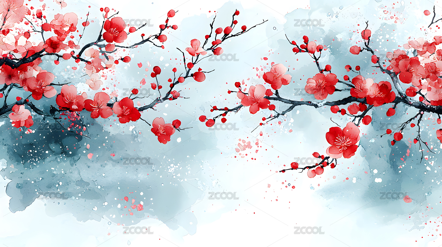 手绘,唯美,中国风,山水画,水墨画,意境,风景,户外,梅花,植物