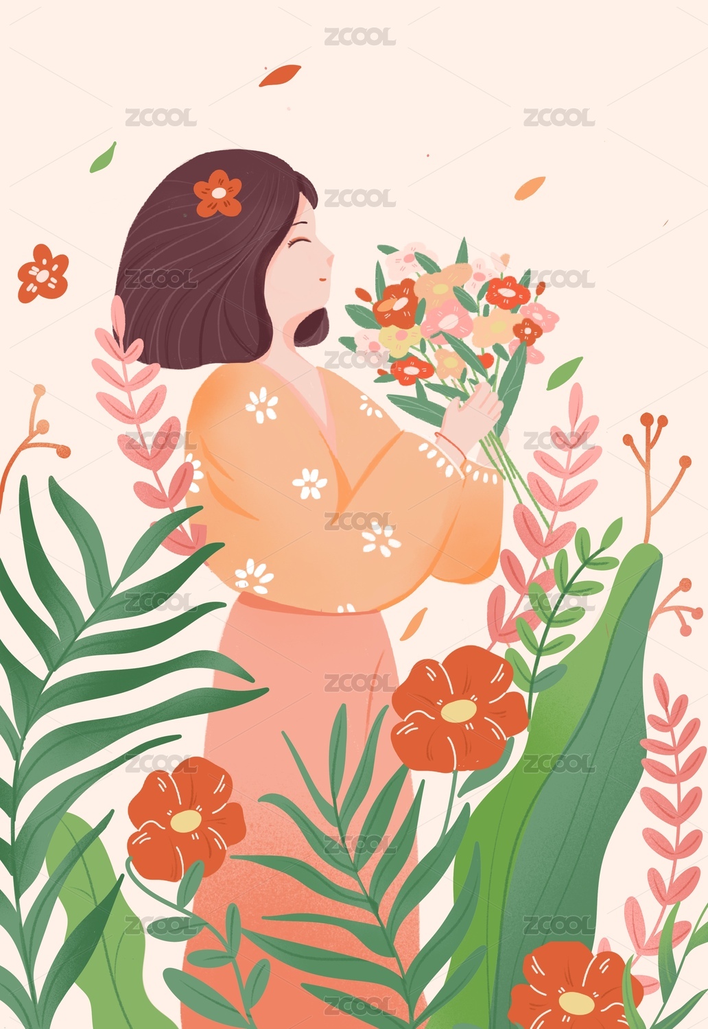 手绘,卡通,妇女节,插画,节日,女人,母亲节,背景,海报,妈妈