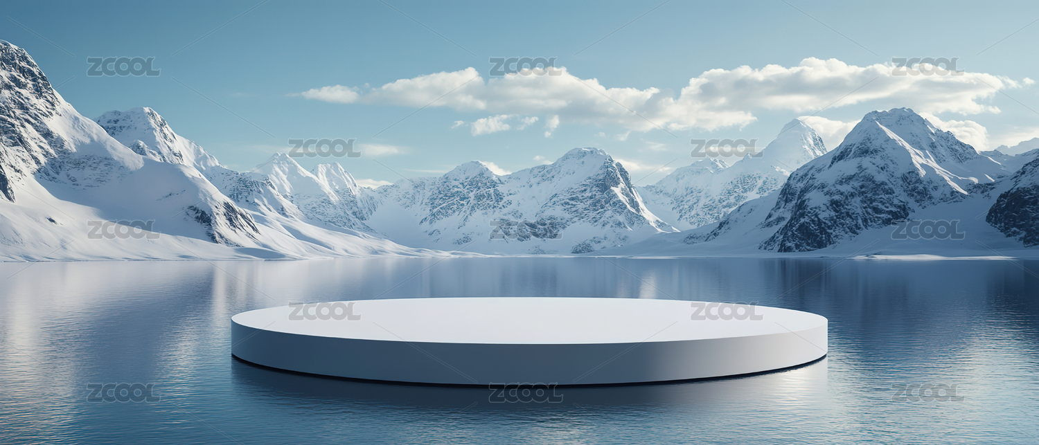 雪山水面圆形展台背景