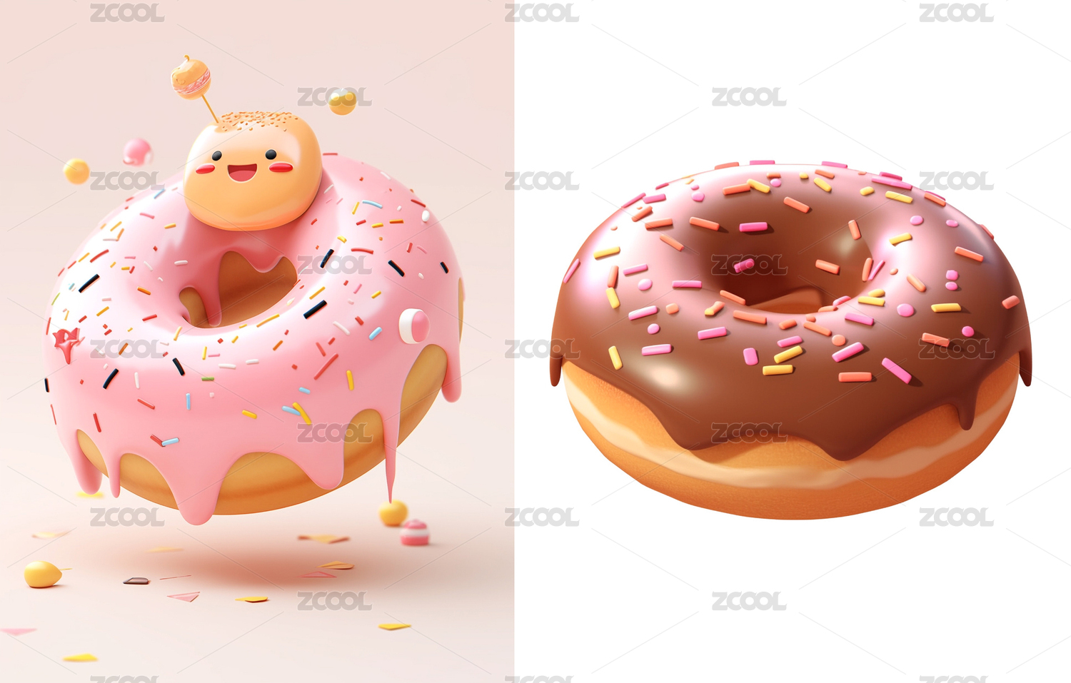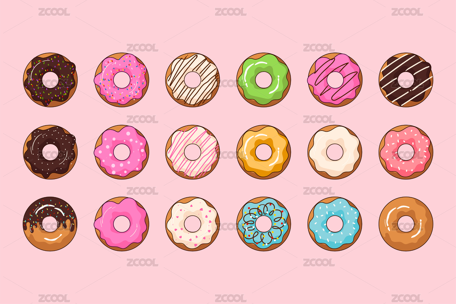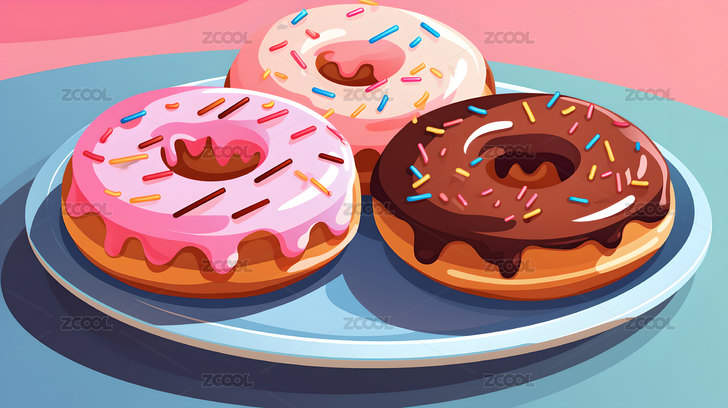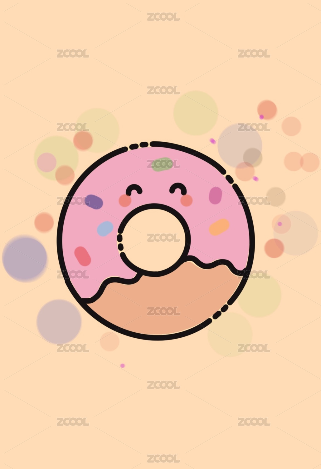 手绘,卡通,可爱,面包圈,美食,甜甜圈,甜品,食物,美味,插画